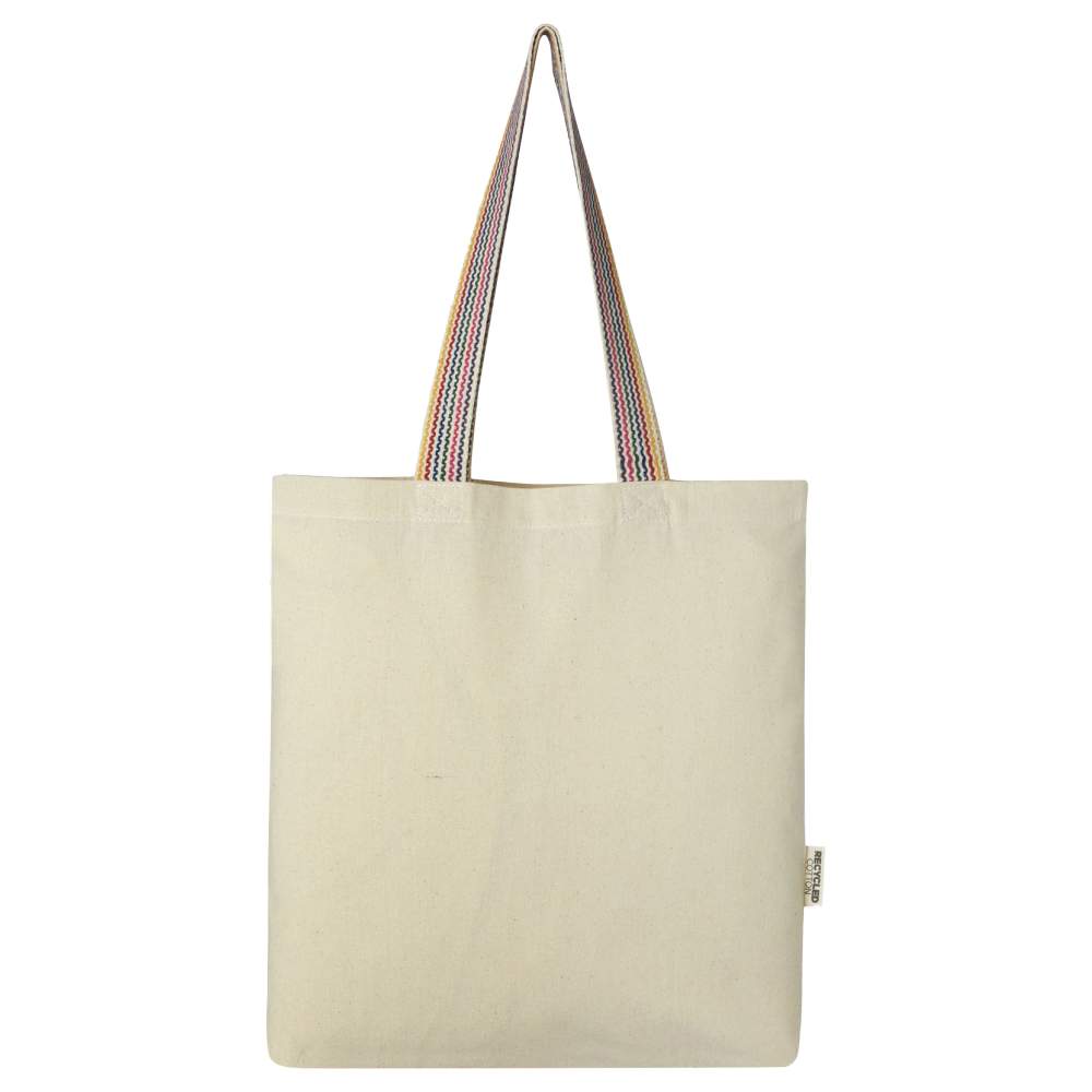 Worek shopping Rainbow jest alternatywą dla klasycznego worka zakupowego z bawełny. Wykonany z recyklingowanego bawełny, ten worek posiada tęczowe uchwyty o długości 25cm i dno z fałdami o wysokości 3,5cm, co zapewnia dodatkową przestrzeń do przechowywania. Może pomieścić aż 5 kg. Wymiary: 37 x 3,5 x 38 cm. Skład: 80% recyklingowana bawełna, 20% recyklingowany poliestr.