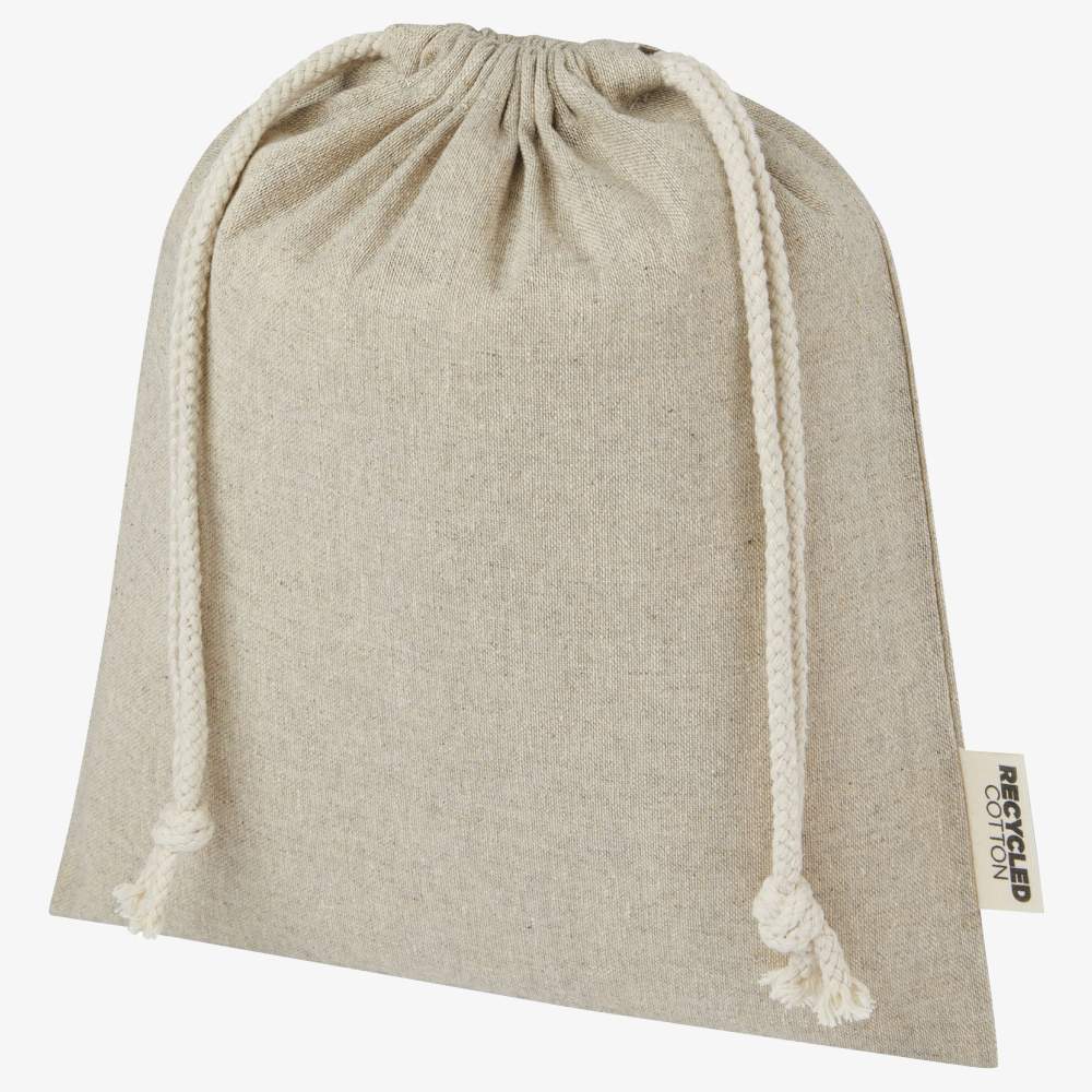 Podarunkowa torebka z recyklingowanej bawełny ze sznurem do zamykania. Została zaprojektowana w celu wręczania lub przechowywania przedmiotów. Mogiły wystąpić niewielkie zmiany barw w wyniku procesu produkcyjnego.