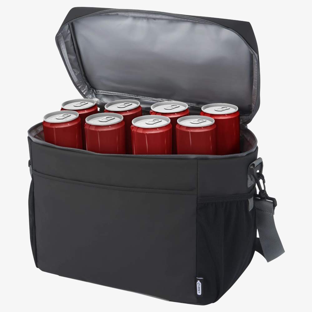 Torba termoizolacyjna o pojemności 22 litrów, przeznaczona do utrzymywania napojów i żywności w chłodzie. Wykonana z materiałów recyklingowych, w tym z zamknięciami na zamek błyskawiczny, ta torba łączy funkcjonalność z troską o środowisko. Działa z głównym zapiętym zamek błyskawiczny, wyłożonym izolacją z pianki i termoizolacją z wysokiej gęstości PEVA, zapewniając optymalne utrzymanie temperatury. Dwie sieciowe kieszenie i jedna otwarta kieszeń przednia oferują dodatkową przestrzeń na przechowywanie akcesoriów. Rękojeść do przenoszenia i regulowana, podszewkowa opaska pozwalają na komfortowe przenoszenie. Ta torba jest idealna na pikniki, wycieczki na świeżym powietrzu i wydarzenia sportowe.