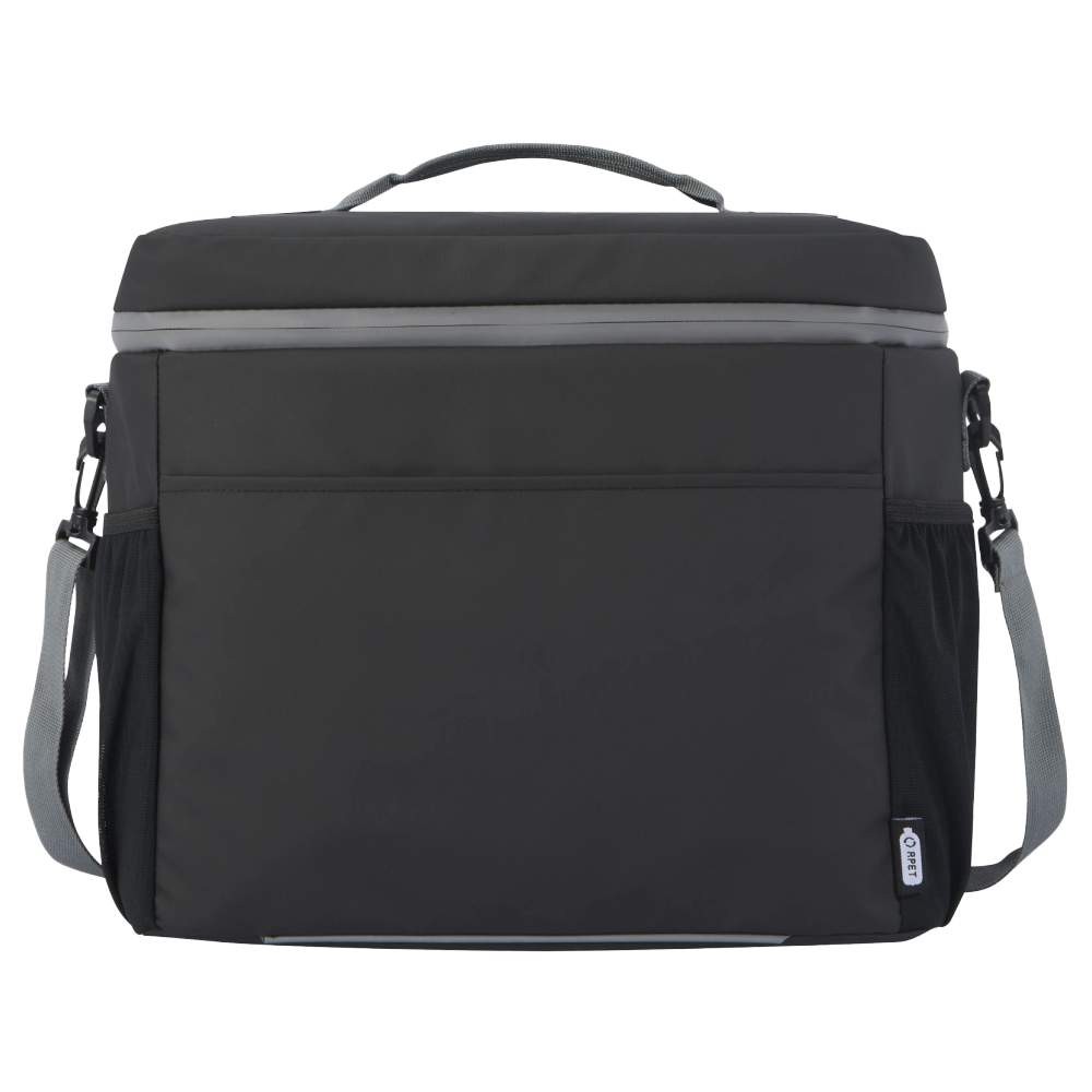 Torba termoizolacyjna o pojemności 22 litrów, przeznaczona do utrzymywania napojów i żywności w chłodzie. Wykonana z materiałów recyklingowych, w tym z zamknięciami na zamek błyskawiczny, ta torba łączy funkcjonalność z troską o środowisko. Działa z głównym zapiętym zamek błyskawiczny, wyłożonym izolacją z pianki i termoizolacją z wysokiej gęstości PEVA, zapewniając optymalne utrzymanie temperatury. Dwie sieciowe kieszenie i jedna otwarta kieszeń przednia oferują dodatkową przestrzeń na przechowywanie akcesoriów. Rękojeść do przenoszenia i regulowana, podszewkowa opaska pozwalają na komfortowe przenoszenie. Ta torba jest idealna na pikniki, wycieczki na świeżym powietrzu i wydarzenia sportowe.