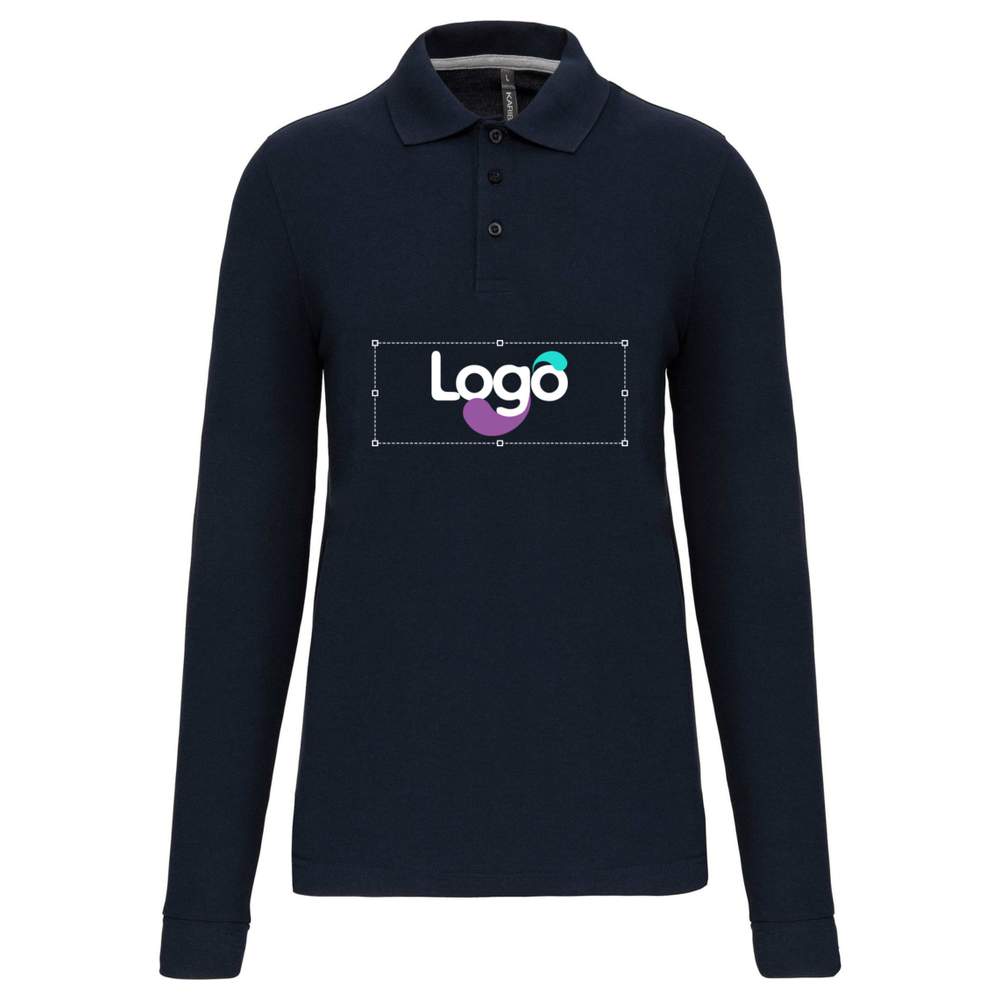 Polo z długimi rękawami dla mężczyzn idealne do użytku profesjonalnego. Patyka zapinana kolor w kolor, kolorowy kark z paskiem ochrony. Wykończenie bord-côte na dole rękawów. Boczne szczeliny z kontrastującym paskiem dla większego komfortu. Wykończenie podwójnej igły na dole ubrania. Możliwość spersonalizowania przez haftowanie w celu unikalnego oznaczenia logo lub wzoru.