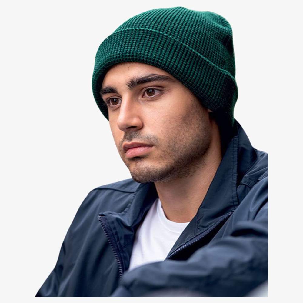 Este gorro é feito de malha acrílica estampada e é forrado para maior conforto. Possui uma malha de 6 e 4 costuras no topo do gorro, bem como um ponto de arroz tricotado. A composição é de 100% acrílico. Este gorro oferece boa isolamento térmico e uso confortável.