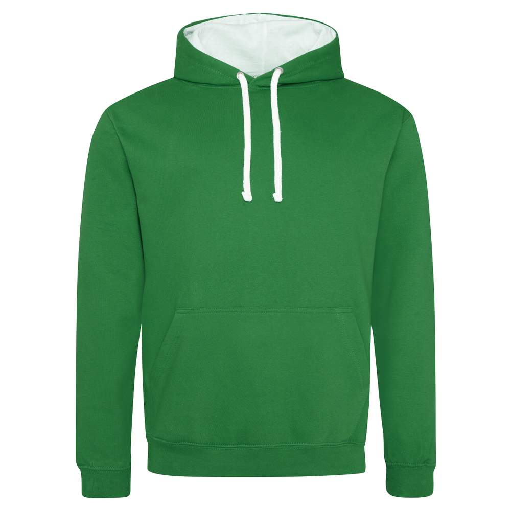 Moderno e versátil, este moletom universitário está disponível em uma ampla gama de cores bicolores e acompanha uma pequena abertura para o fio dos fones de ouvido no seu bolso lateral. Ele possui detalhes de costura dupla e um capuz com forro contrastante, além de um cordão plano contrastante e um bolso frontal kanguru. As bordas das mangas e a parte inferior são em ribana.