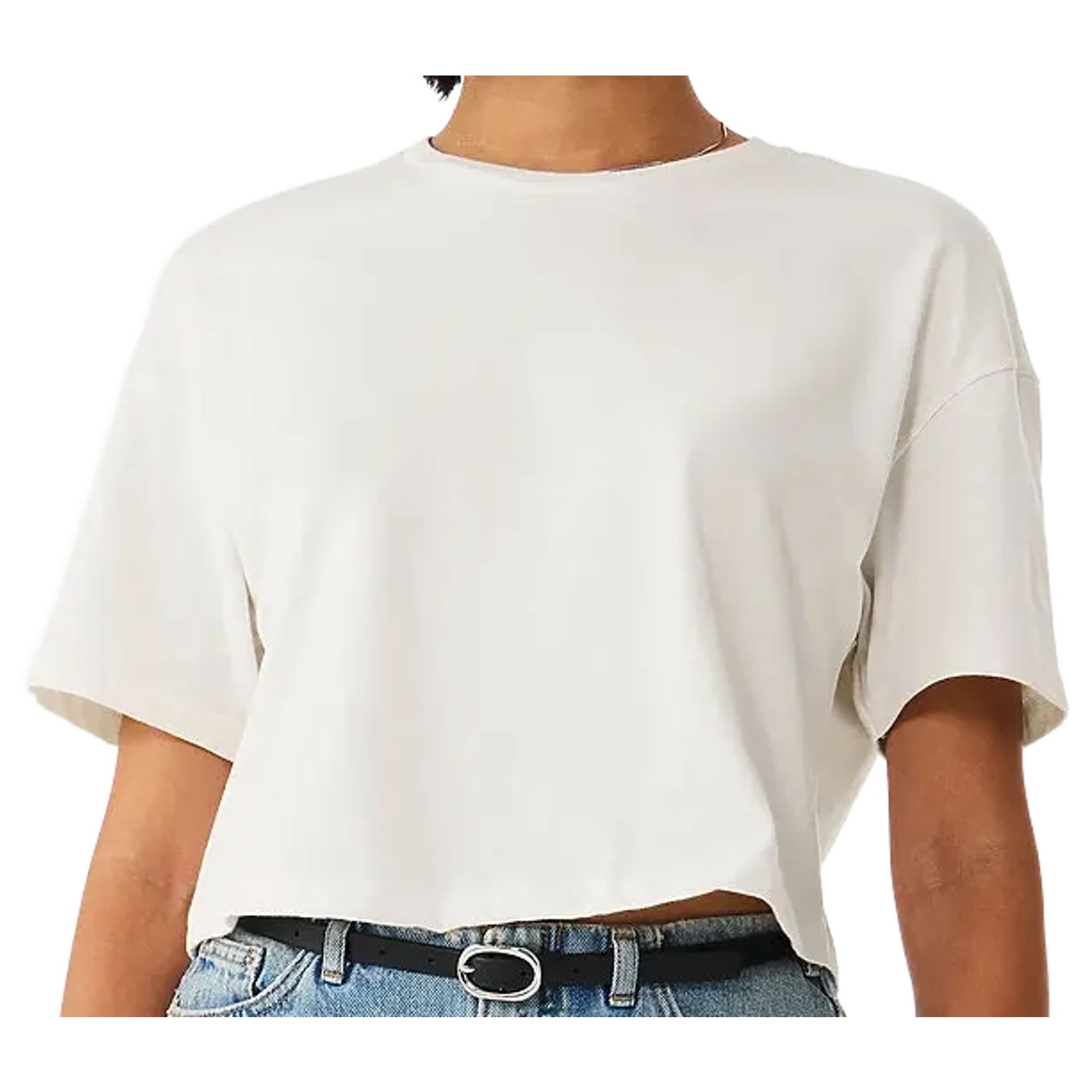 O tee-shirt cropped é um tee-shirt de mulher com corte quadrado curto, com aspeto lavado e mangas oversize. A sua construção com costuras laterais e fio de algodão é adequada para uso corrente. A etiqueta destacável facilita a sua utilização em diferentes contextos.