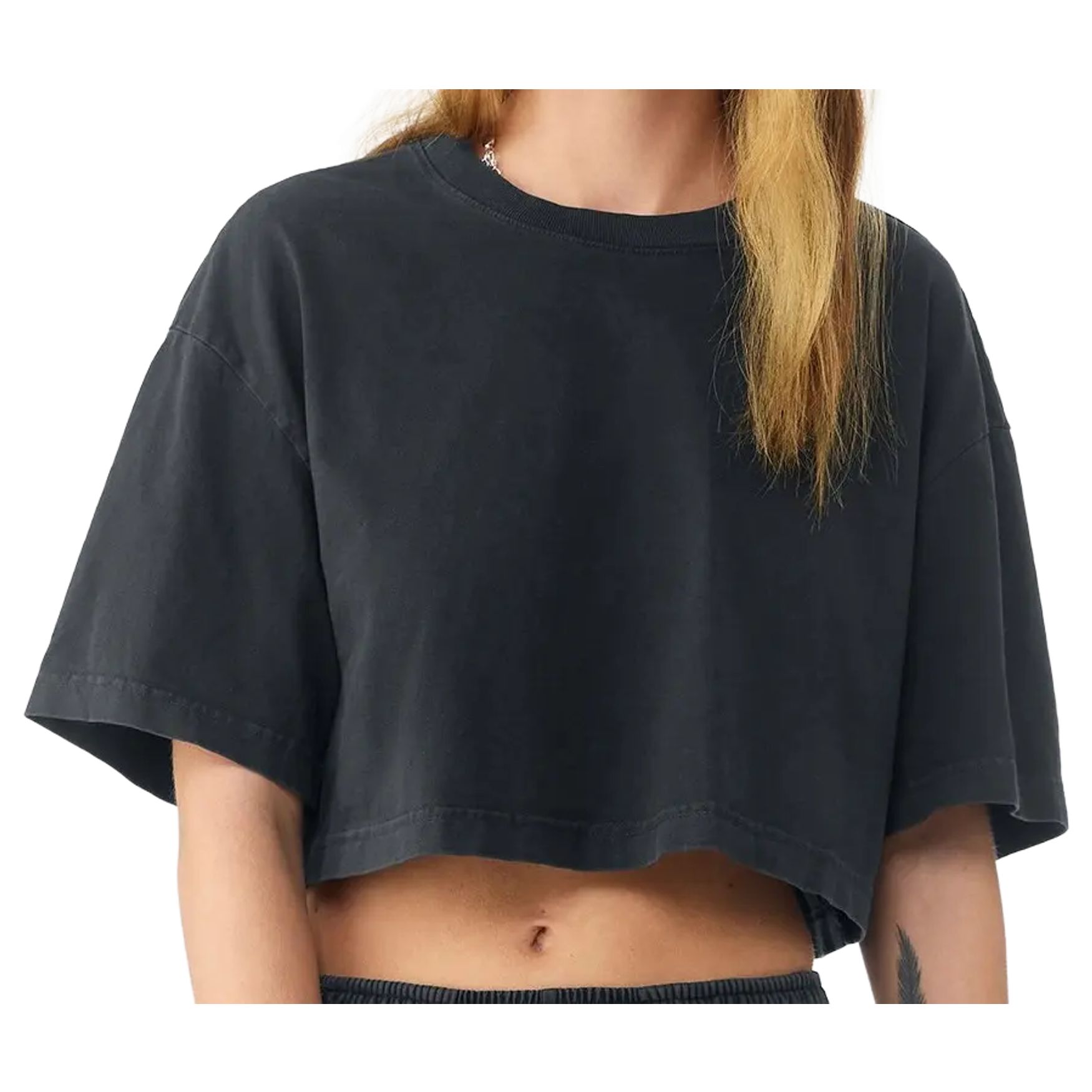 O tee-shirt cropped é um tee-shirt de mulher com corte quadrado curto, mangas oversize e acabamento lavado. A sua confeção em fio de algodão ringspun e as suas costuras laterais garantem um caimento adequado para uso diário. A etiqueta destacável facilita a personalização.