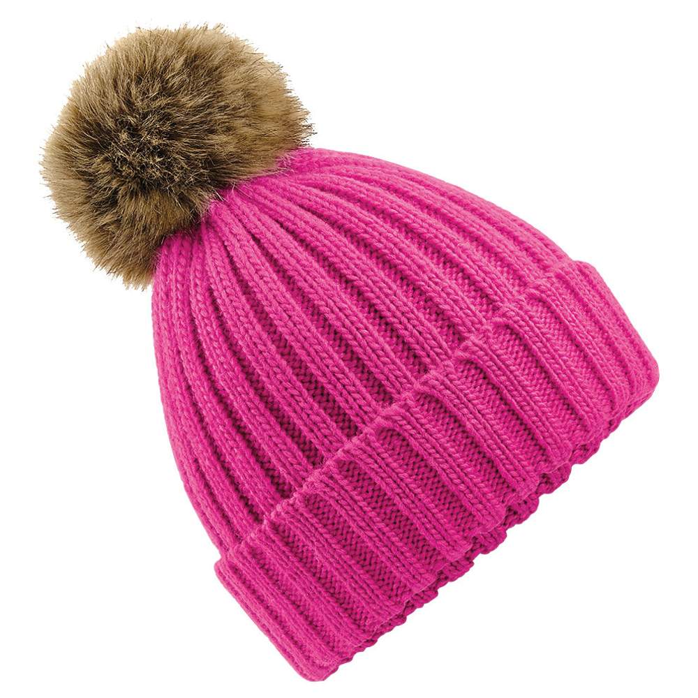 Boné de malha larga com pompom de pele b412 - Fuchsia