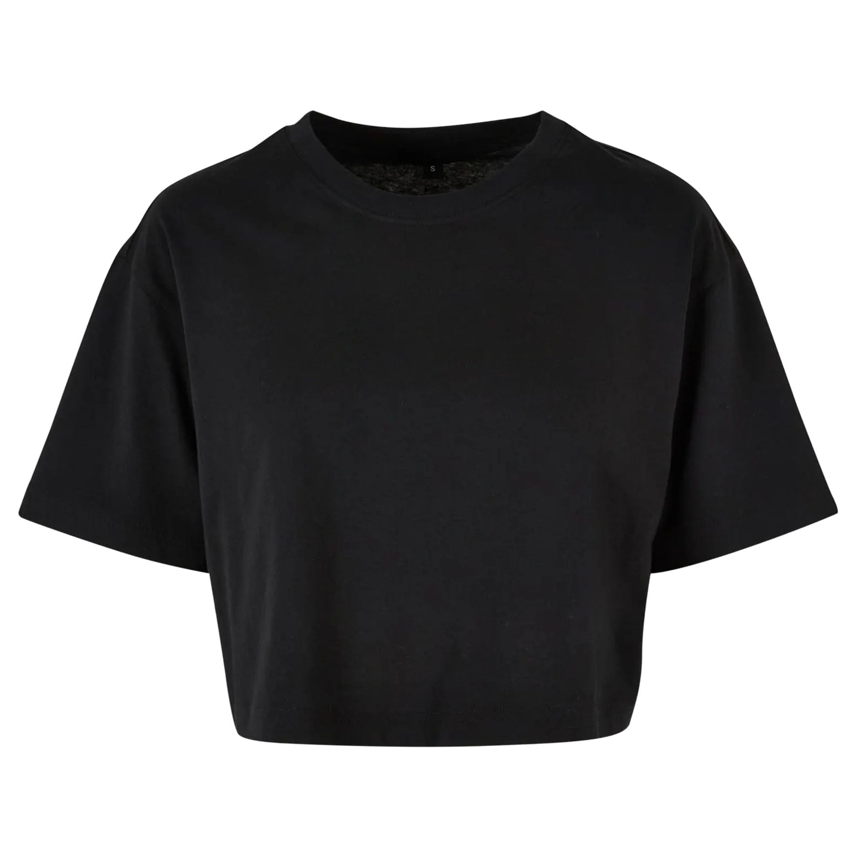 O Tee Oversize Curto tee-shirt curto feminino, corte oversize, com mangas retas e costuras laterais. Sem etiqueta de marca, com etiqueta de tamanho.