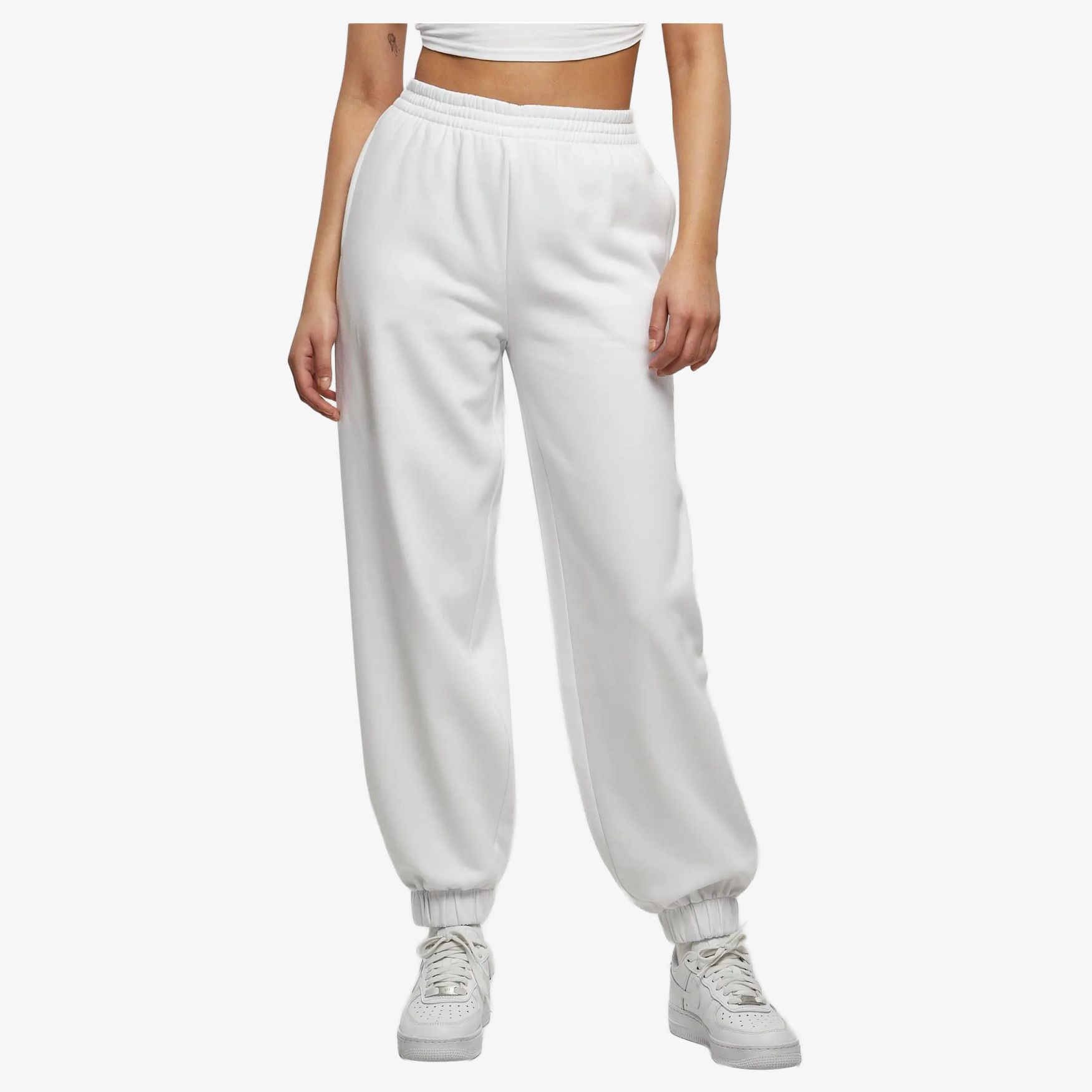 As Calças Balão de Cintura são um jogging feminino de cintura alta com cós elástico e punhos ajustados nas pernas. Sem etiqueta de marca, apenas uma etiqueta de tamanho.