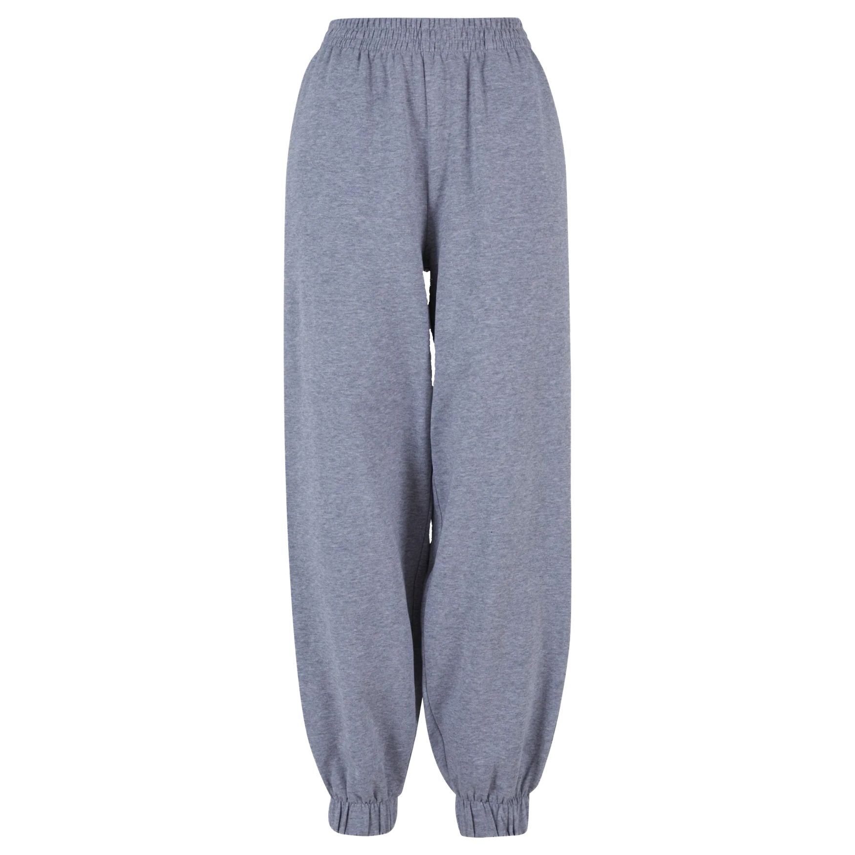 As Calças Balão de Cintura são um jogging feminino de cintura alta com cós elástico e punhos ajustados nas pernas. Sem etiqueta de marca, apenas uma etiqueta de tamanho.