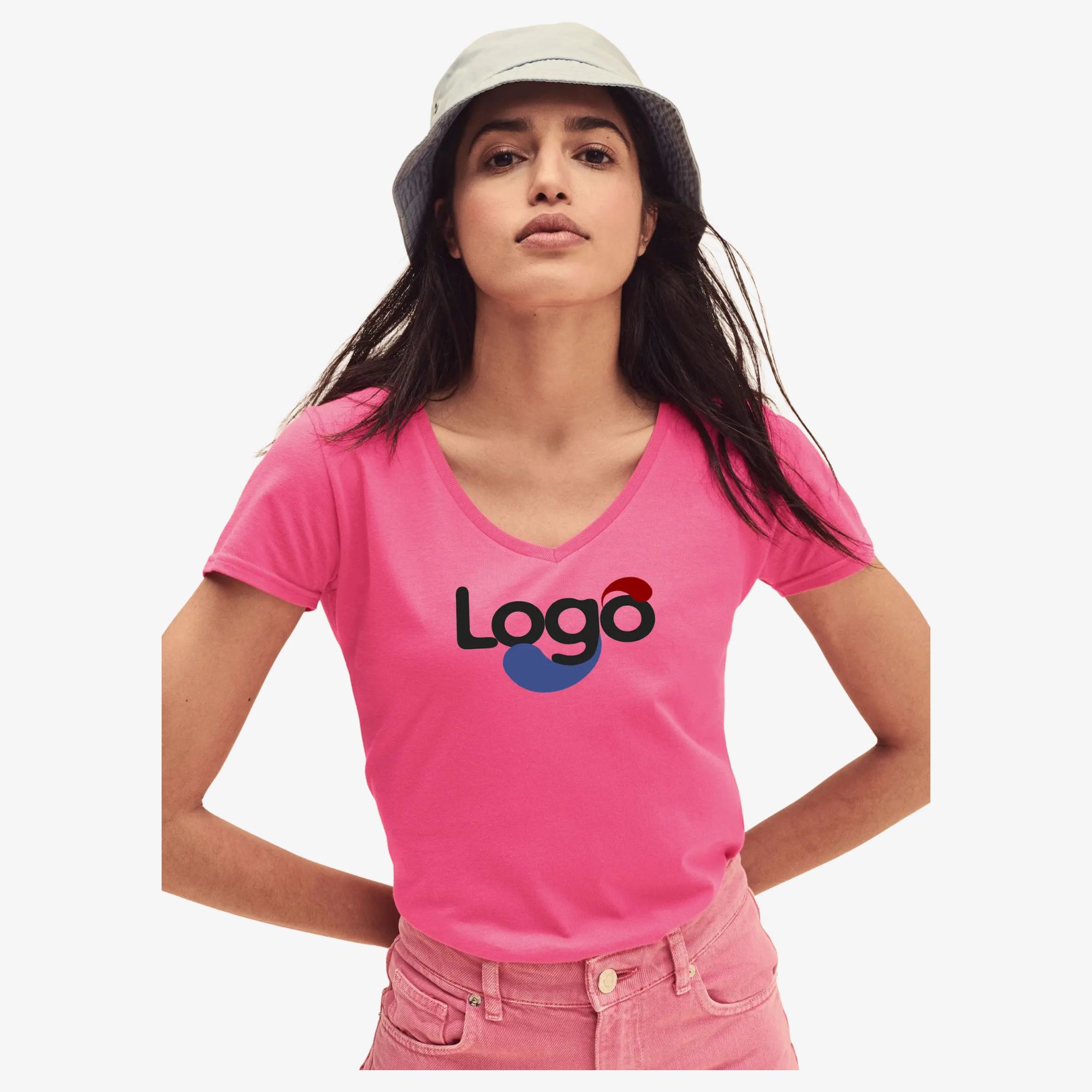 O Ladies 150 v neck e um tee-shirt de mulher com decote em V com canelado 1 x 1, costuras laterais e fita de reforco na gola. Etiqueta destacavel. Personalizacao possivel por marcacao.