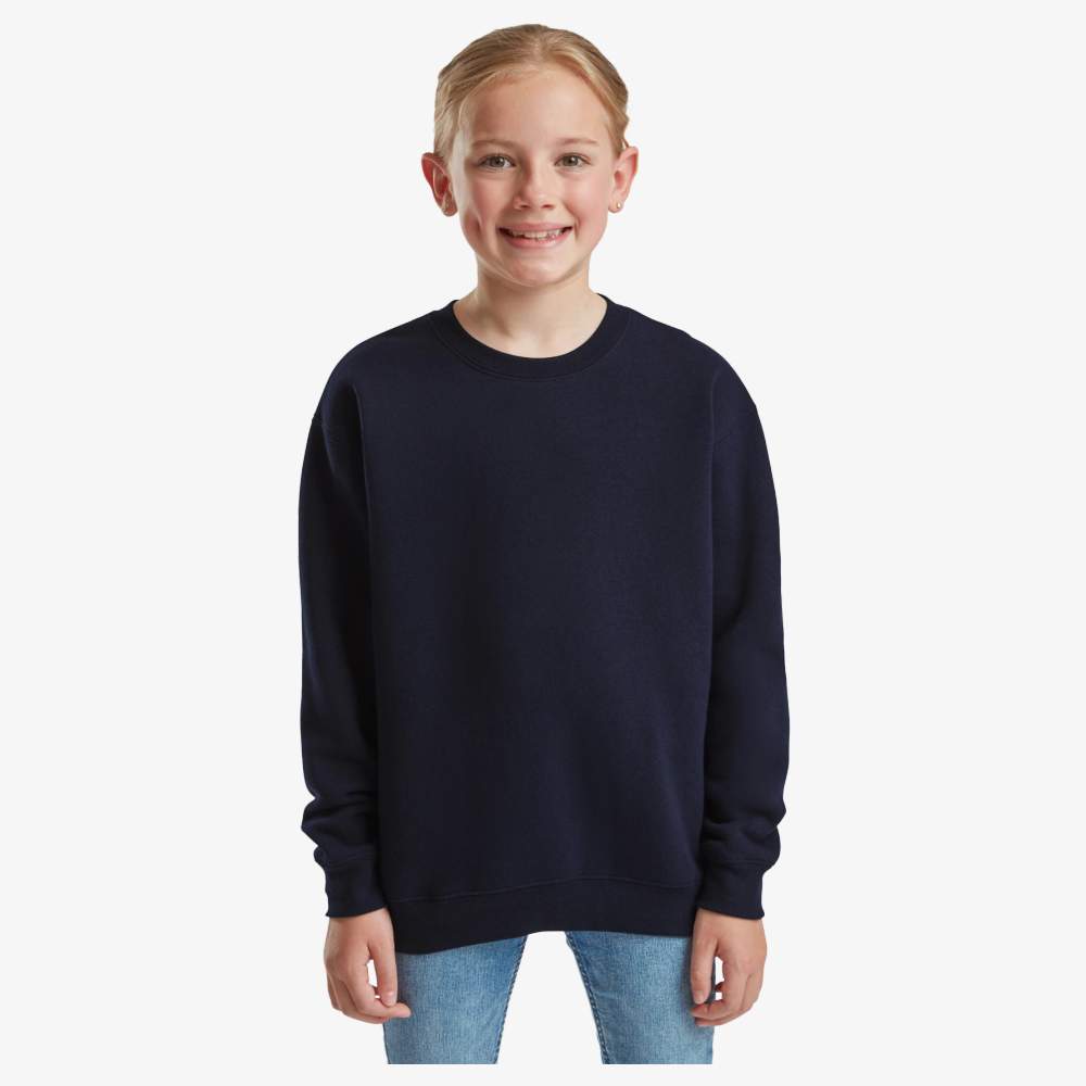 Este sweat para criança é feito de uma mistura de algodão e poliéster para o máximo conforto. Possui mangas montadas e uma construção tubular para melhor ajuste. Os acabamentos em costura dupla reforçam a durabilidade da roupa. Este sweat oferece um bom custo-benefício para os pais preocupados com o conforto de seus filhos.
