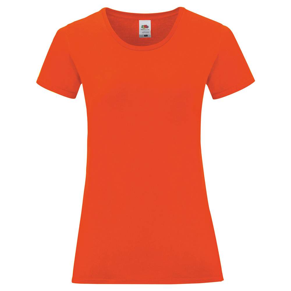 Camiseta de manga curta ringspun para mulher. Costuras laterais ajustadas para um corte feminino. Toque suave. Colarinho baixo em costura 1x1. Tira reforçada no pescoço do mesmo tecido. Nova etiqueta de colarinho removível. Composição: 100% algodão penteado fio a anel.