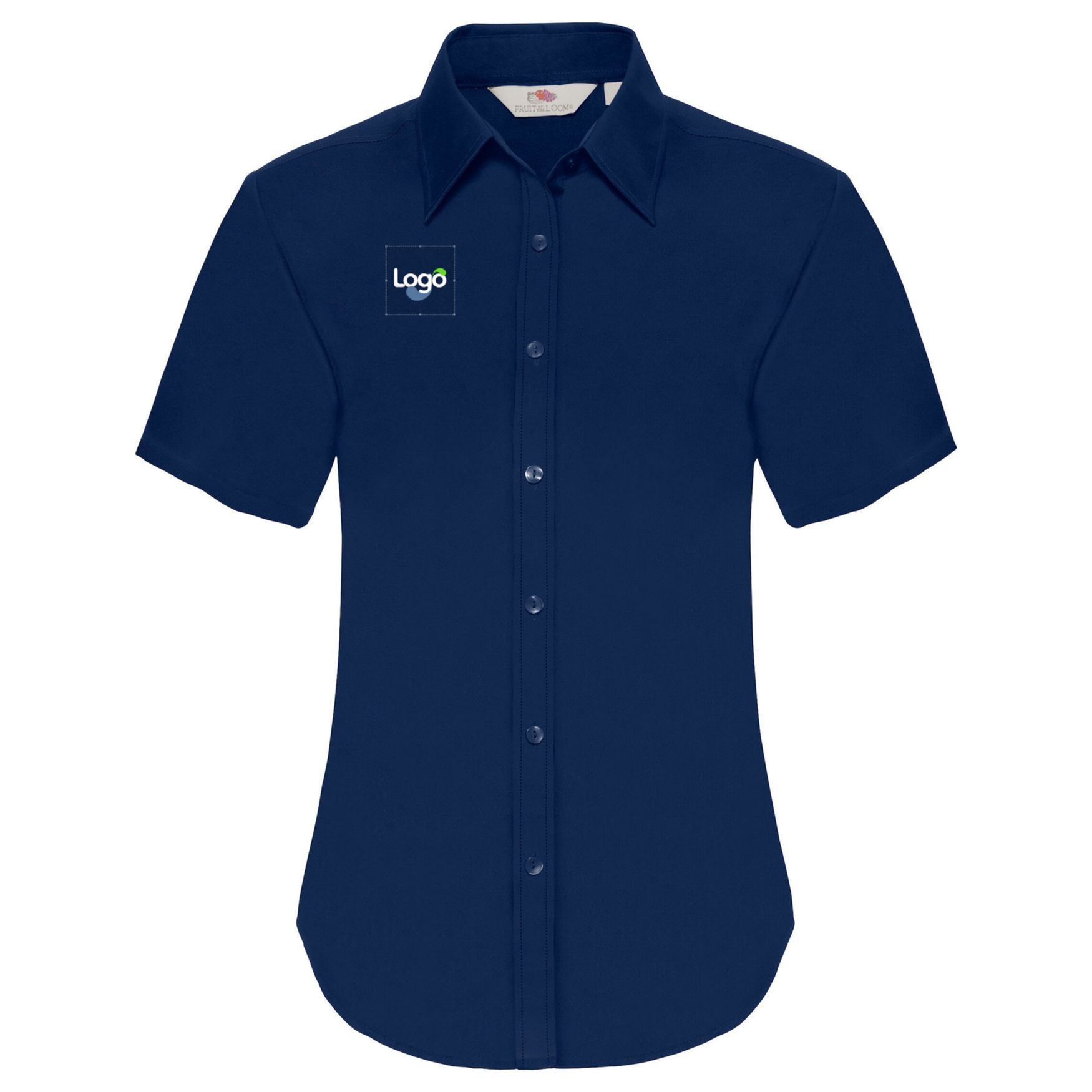 Camisa de manga curta oxford lady-fit 65-000-0 personalizada - Bleu marine