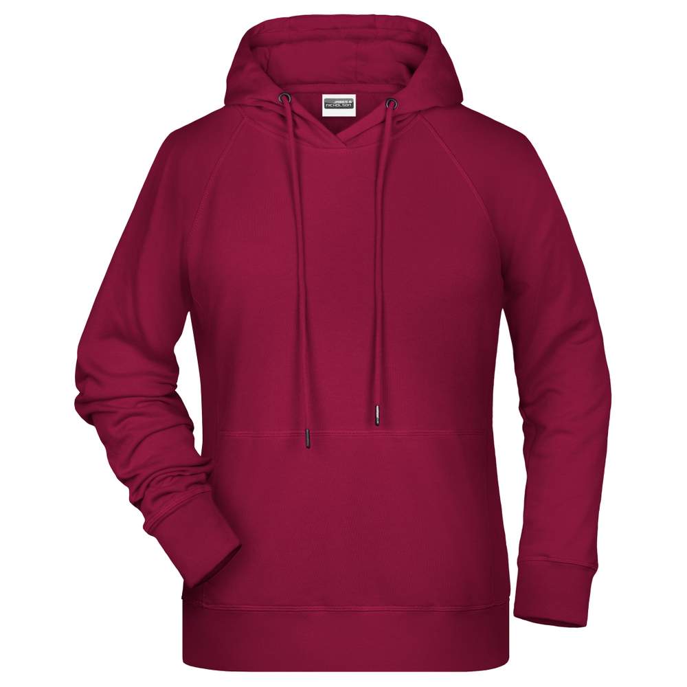 Moletom com capuz para mulher, corte ligeiramente ajustado, com mangas raglan. O interior macio oferece maior conforto. Esta peça é concebida com um tecido de alta qualidade anti-transpiração. Inclui capuz de duas camadas com cordão de aperto, costuras laterais na frente e uma prática bolsa kanguru. Os punhos são dotados de elastano para um ajuste ótimo. Etiqueta removível.