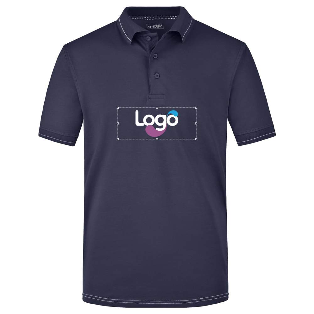 Esta camisa polo de algodão elástico oferece conforto ideal graças à sua composição. Tem um colarinho e punhos tricotados com listras contrastantes, além de uma faixa de limpeza e fendas laterais. Esta camisa polo é ideal para personalização com bordado, permitindo adicionar o seu logotipo ou imagem. Seu corte clássico e tecido macio tornam-no uma peça versátil para diversas ocasiões.
