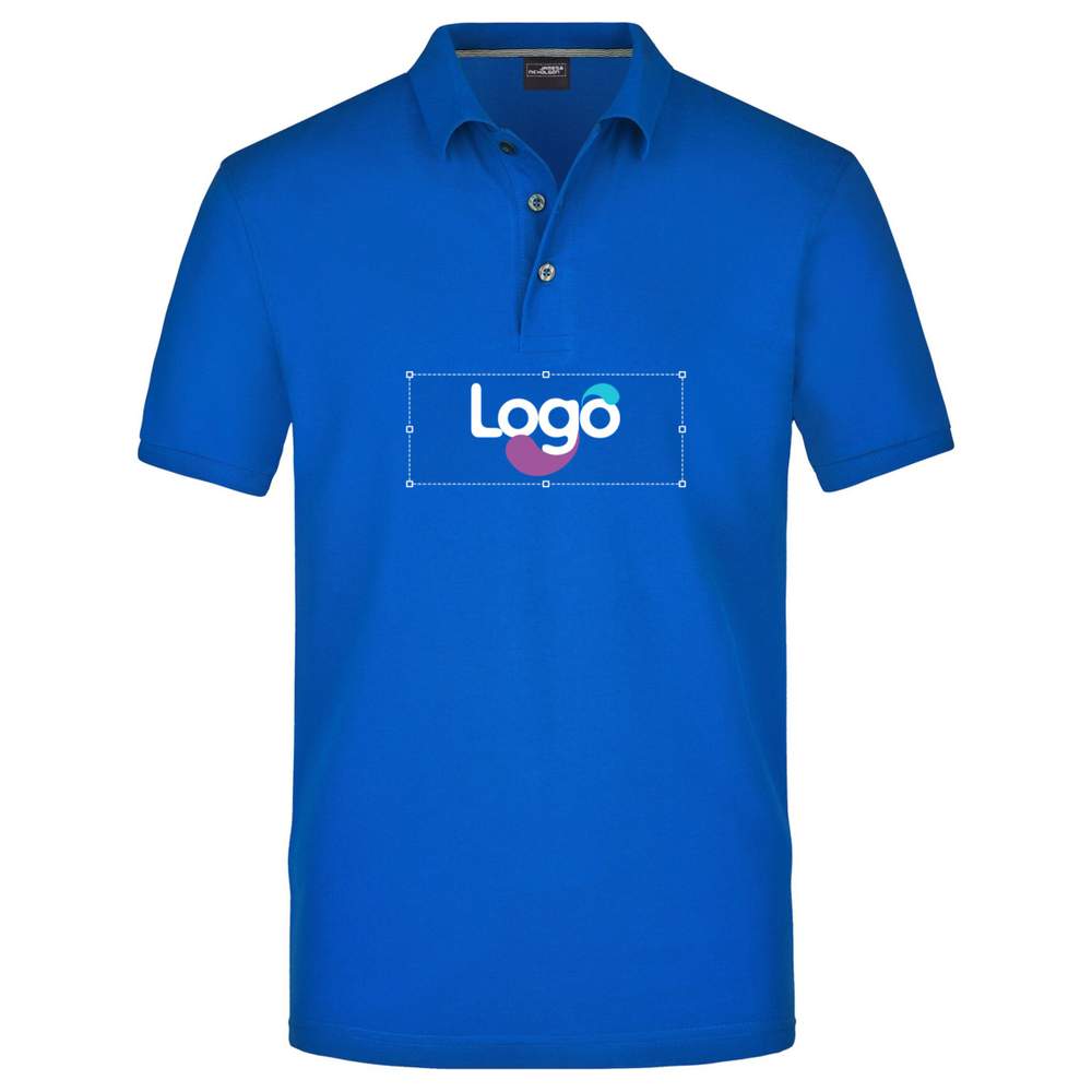 Polo masculino de alta qualidade. Excelente qualidade de tecido tricotado. Em algodão Pima, penteado e fiado em anel. O uso do algodão Pima, que é particularmente fino e com pelos longos, permite obter uma grande qualidade de superfície. O colarinho do polo e as mangas são tricotados. Possui botões de cor titânio, aberturas laterais e 3 botões. Este polo oferece conforto ótimo e excelente caimento. Possibilidade de personalização com bordado para um visual único e profissional.