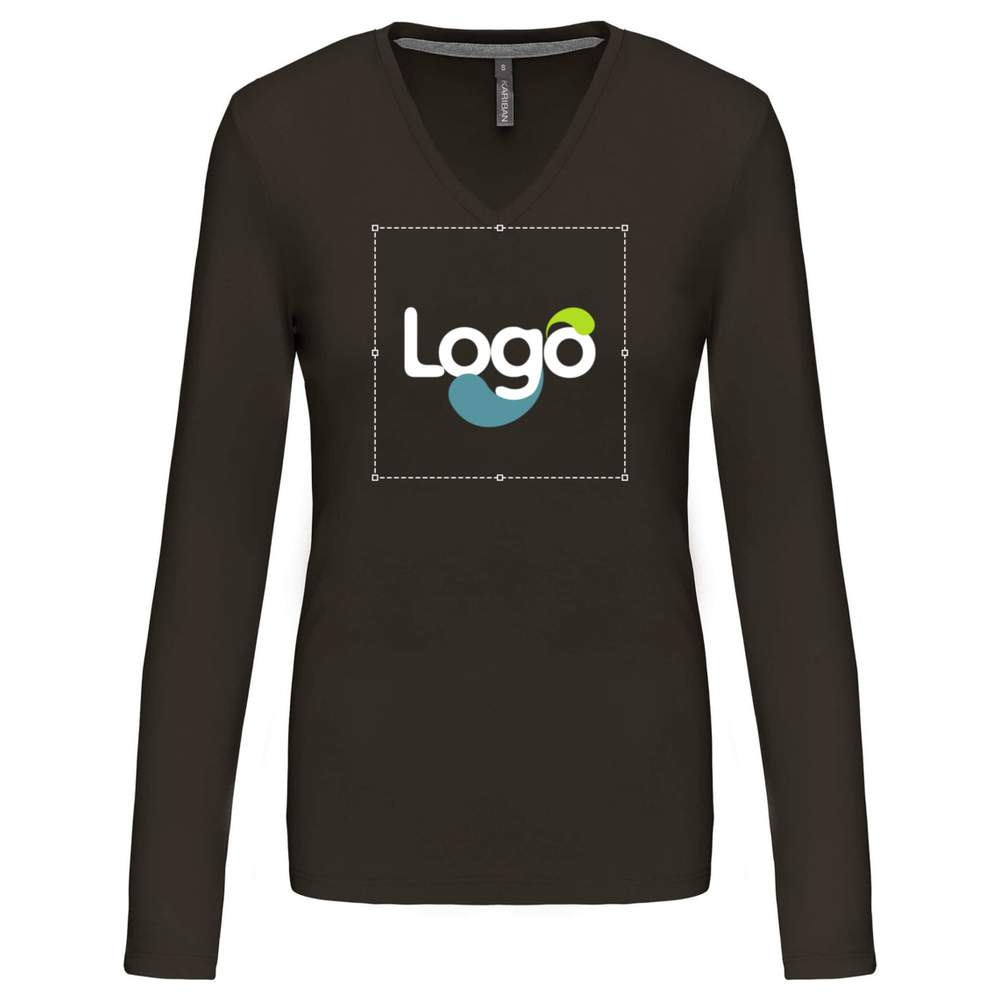 K382 - Camisa de manga comprida col v feminina k382 personalização - chocolate