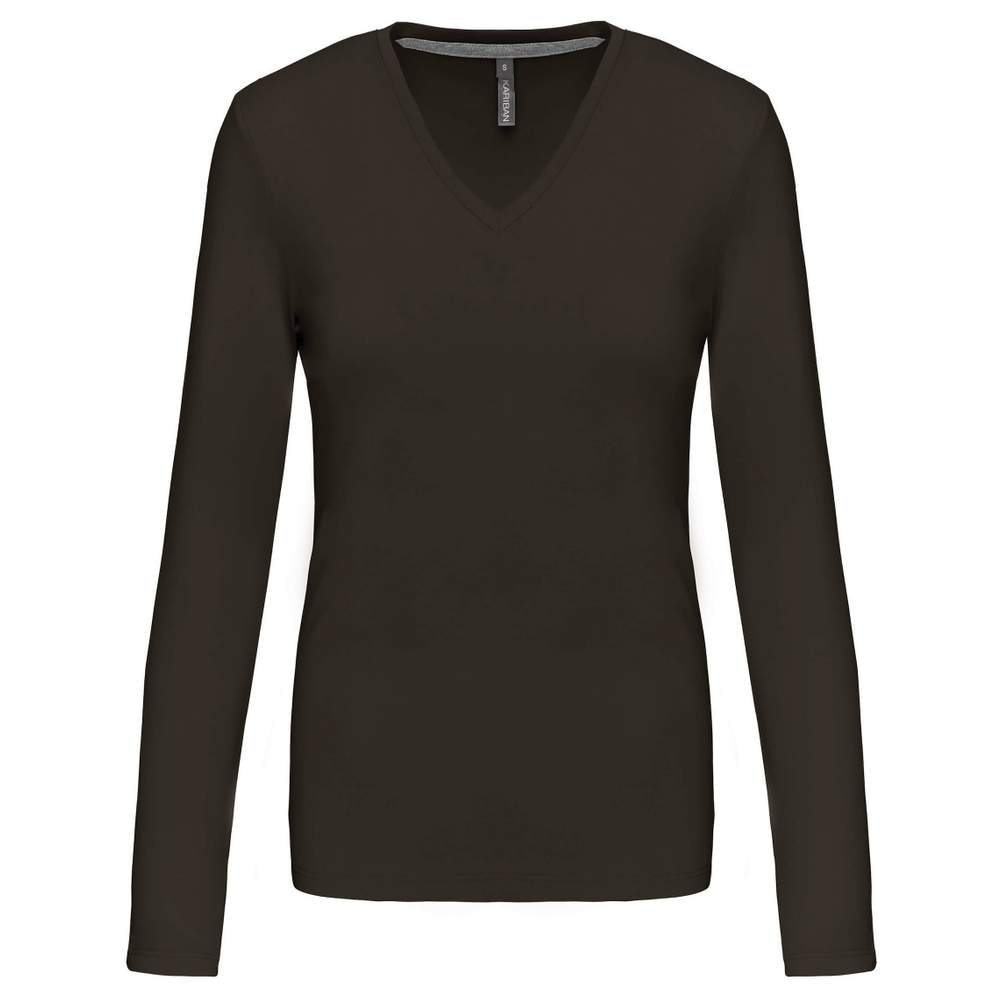 K382 - Camiseta com decote em V manga comprida mulher k382 - chocolate