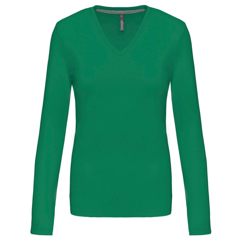 Camiseta com decote em V manga comprida mulher k382 - Kelly green