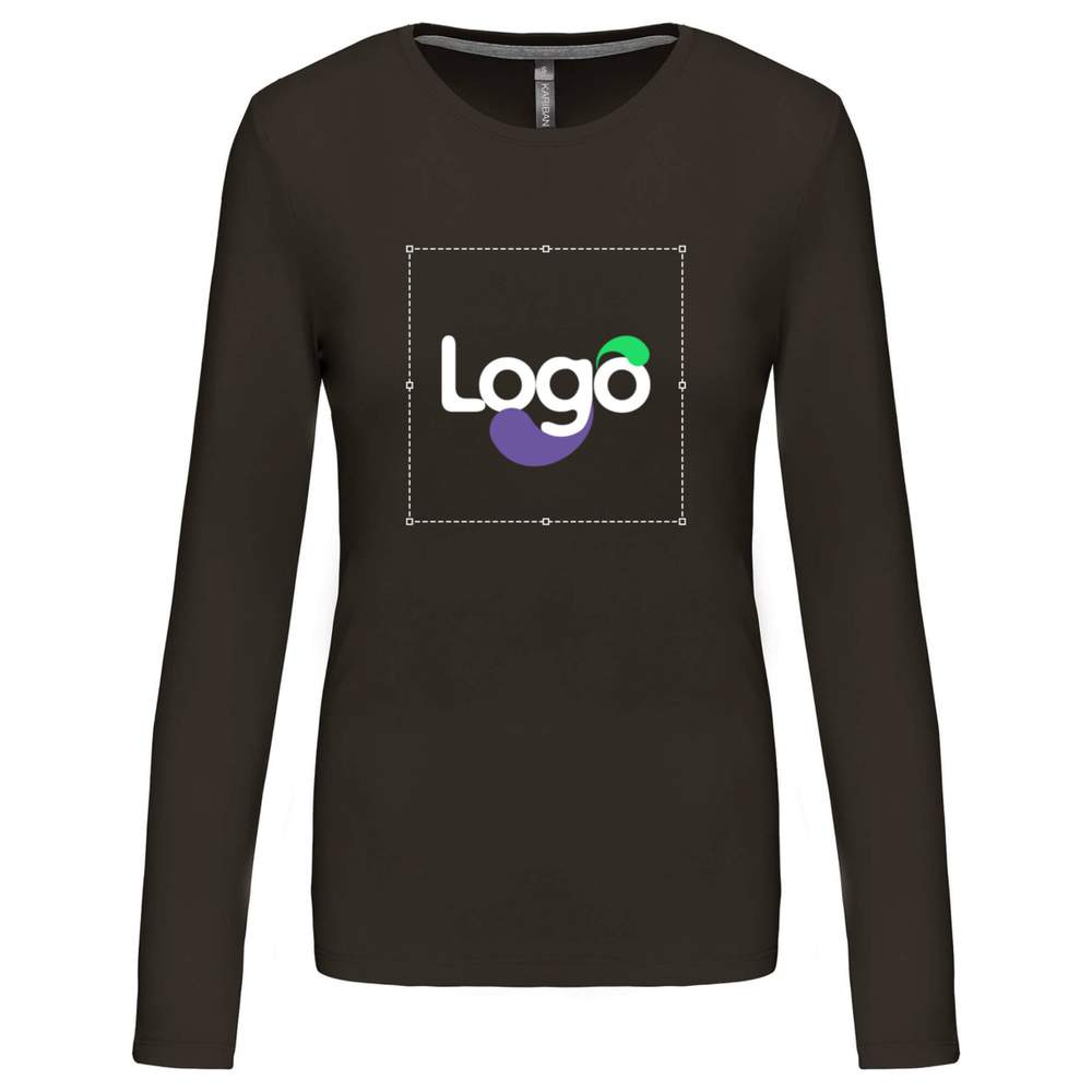 K383 - Camiseta de mangas compridas com gola redonda para mulher k383 personalização - chocolate