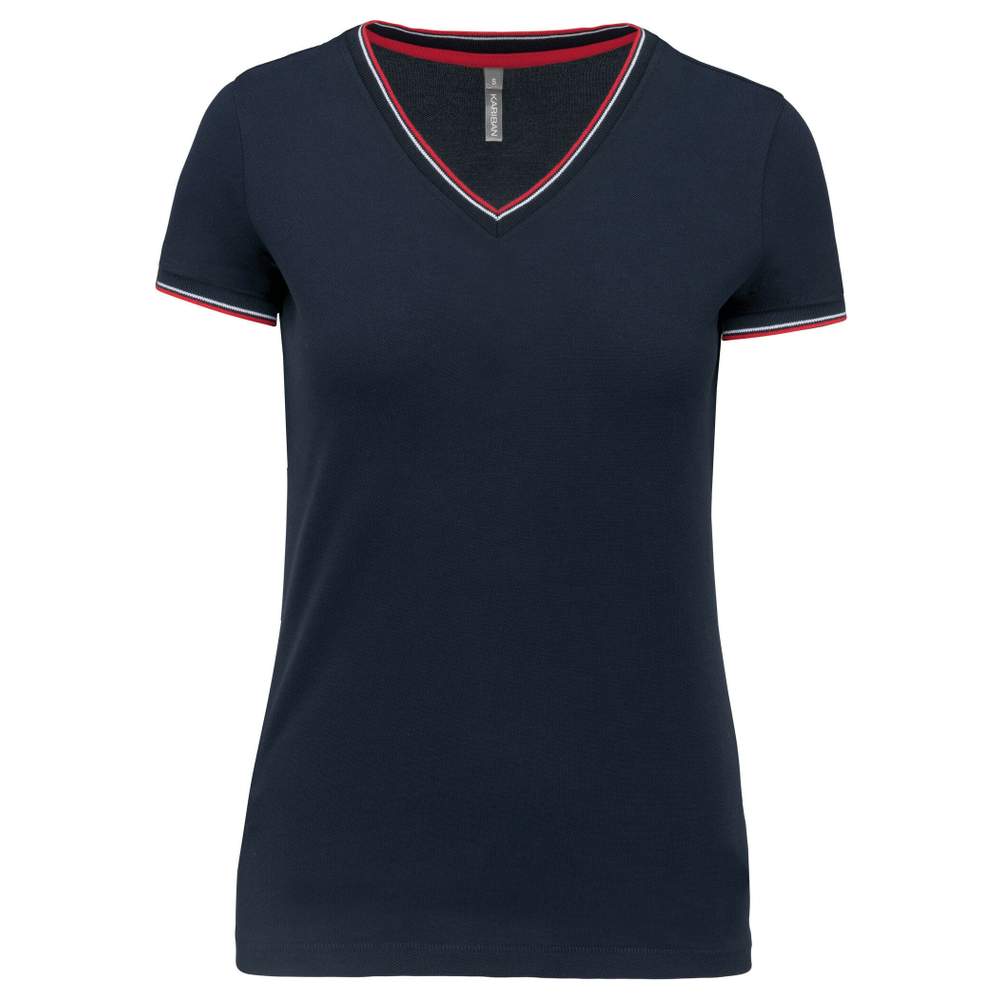 K394 - Camisa social col v mulher k394 - navy/red/white
