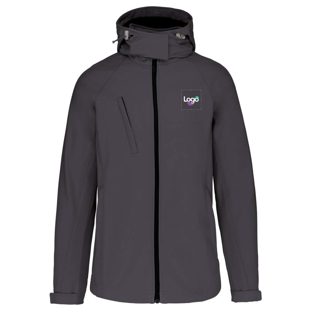 Jaqueta softshell com capuz feminina oferecendo proteção ideal contra intempéries graças ao seu design impermeável e respirável. Fabricada com poliéster e elastano, esta jaqueta garante conforto e liberdade de movimento. Possui capuz removível, mangas raglan e múltiplas bolsas com zíper para um armazenamento prático. O zíper de fechamento garante segurança, enquanto o cordão de ajuste na parte inferior da roupa permite ajustar o corte. Esta jaqueta foi concebida para ser personalizada, oferecendo, assim, uma solução ideal para exibir seu logo ou identidade visual. Seu interior é equipado com um zíper invisível para facilitar o acesso à personalização.