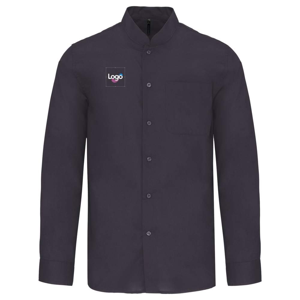 Esta camisa gola mao mangas compridas KARIBAN k515 é confeccionada em poliéster algodão popelina, oferecendo uma manutenção fácil e um conforto óptimo. O seu colarinho mao não abotoado lhe confere um estilo moderno e depurado. Os botões na mesma tonalidade garantem uma harmonia visual. Ela possui um bolso no peito do lado esquerdo com canto arredondado e punhos ajustáveis com cantos arredondados com aba capuz e 2 botões de ligação.