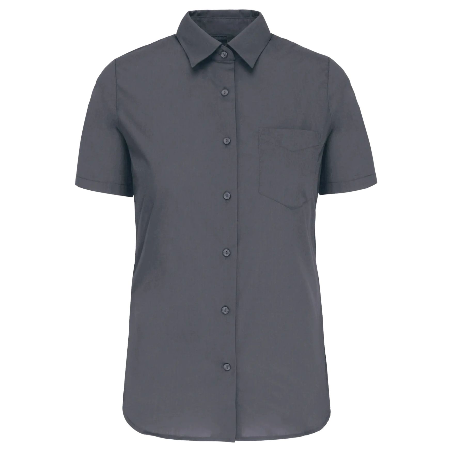 Esta camisa para mulher é confeccionada com uma mistura de poliéster e algodão, proporcionando um conforto ótimo e boa durabilidade. Ela apresenta um corte clássico com mangas curtas, ideal para os dias quentes ou looks descontraídos. Sua construção cuidadosa garante maior durabilidade. Possui colarinho não abotoado e botões na mesma cor para um visual discreto e elegante. Um bolso plano no peito adiciona um toque prático.
