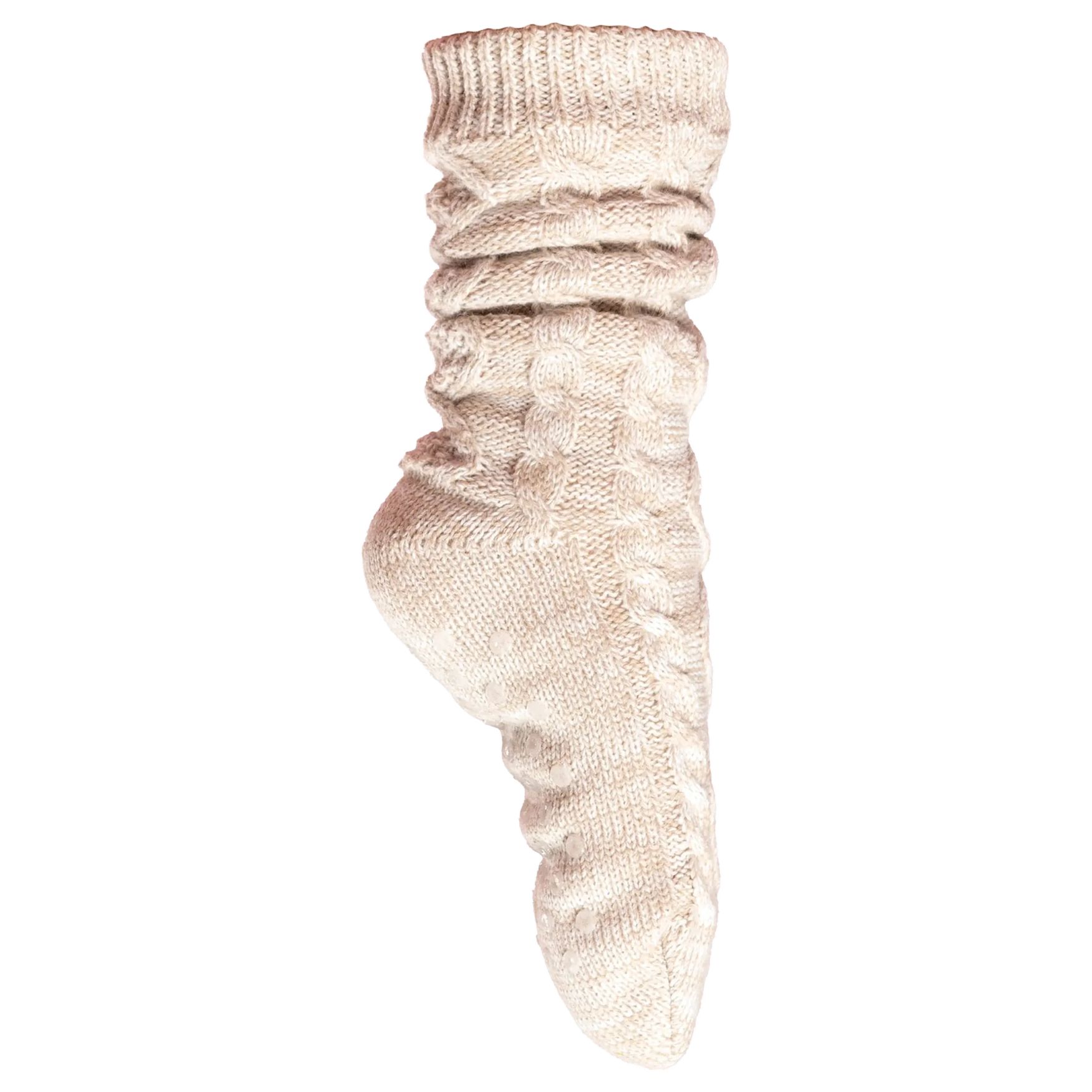Estas meias de lazer forradas sherpa oferecem um conforto térmico aumentado para os momentos de relaxamento dentro de casa. O forro em sherpa proporciona uma sensação de suavidade e calor. A concepção tricotada assegura uma boa respirabilidade. Os picotes antiderrapantes situados sob a sola melhoram a aderência em superfícies lisas. Estas meias são concebidas para um uso doméstico e oferecem um conforto ótimo.