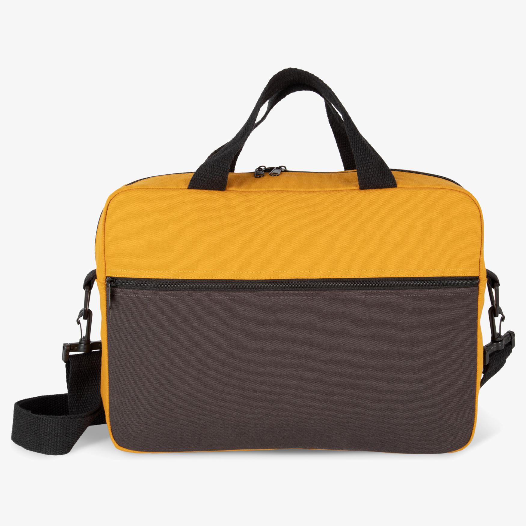 Sacola de trabalho porte-documents concebida em algodão, oferecendo uma solução prática para o transporte dos seus efeitos pessoais e profissionais. É dotada de uma alça ajustável para um porte confortável e personalizado. Esta sacola dispõe de duas bolsas laterais zippadas para um acesso rápido aos pequenos objetos. O compartimento principal é acolchoado, assegurando uma proteção acrescida para um computador portátil até 15 polegadas. A sua capacidade de 12 litros permite levar o essencial para o dia. As dimensões da sacola são de 40 cm de altura, 10 cm de largura e 29.5 cm de profundidade.