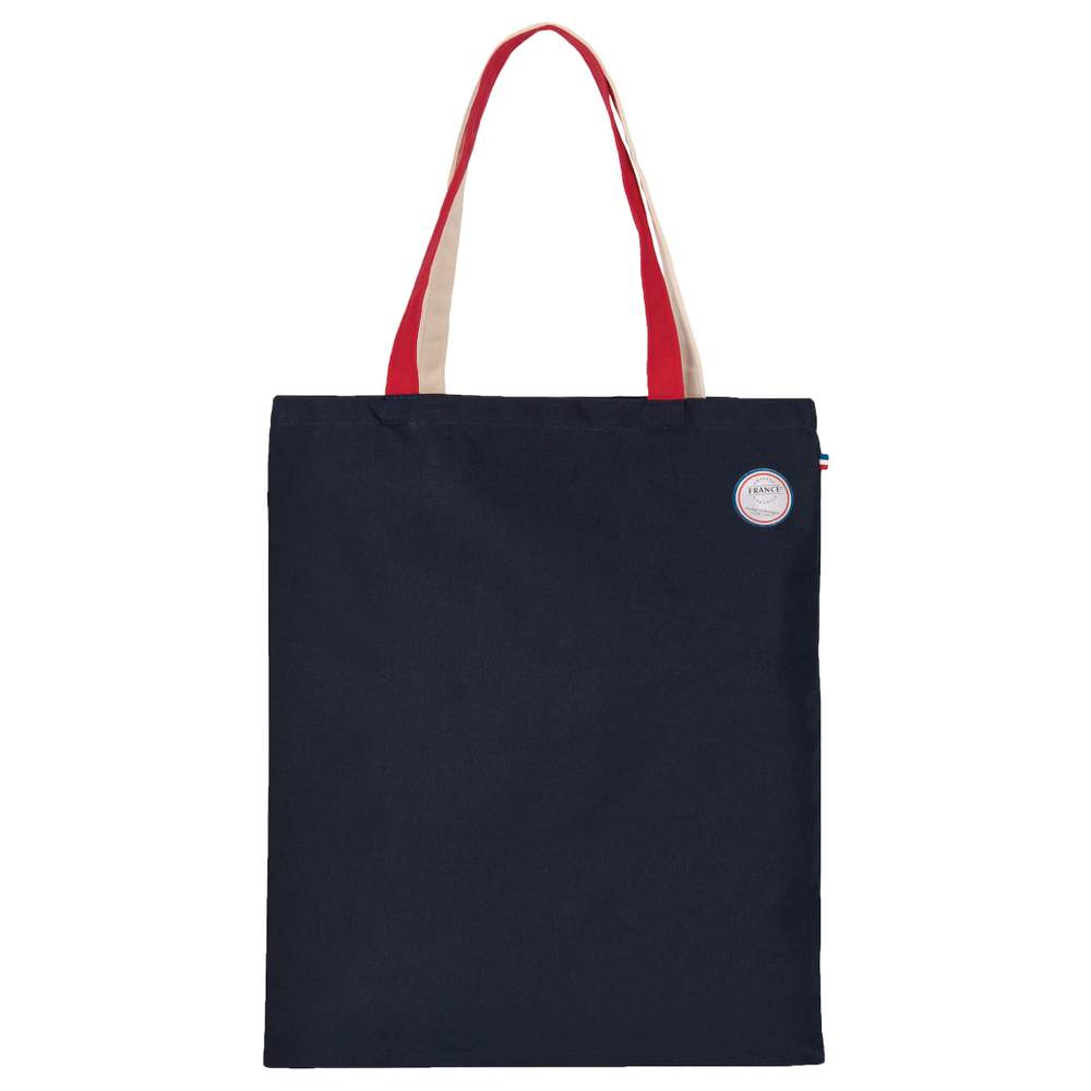 Esta sacola de compras é confeccionada em tecido de algodão. Ela é fabricada na França e possui o selo "Origem França Garantida". Ela apresenta uma etiqueta de tecido com as cores da bandeira francesa costurada do lado. As alças de tecido medem 2,5 cm de largura e 50 cm de comprimento, oferecendo um contraste visual. Suas dimensões são de 43 x 36 cm, para uma capacidade de 13 litros.