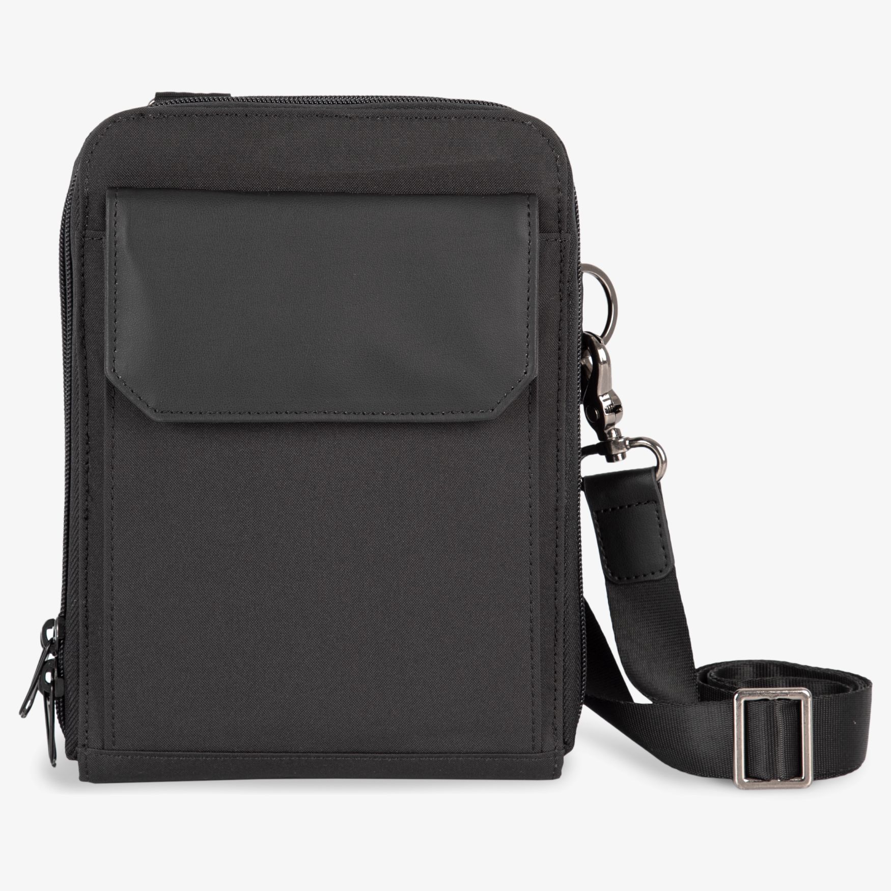 Bolsa a tiracolo com dois compartimentos com zíper e um bolso frontal com botão magnético. A alça é totalmente ajustável. Esta bolsa faz parte da coleção Kialma, a linha de alta qualidade de bolsas e acessórios da K-loop. Os produtos K-loop integram marcadores no fio e, graças à tecnologia blockchain, permitem a rastreabilidade de toda a cadeia de produção. Uma etiqueta especial com um código QR dá acesso à plataforma Aware™ e permite autenticar diretamente as certificações com um smartphone. Esta bolsa oferece uma capacidade de 2 litros e é fabricada a partir de 100% de poliéster reciclado. É possível personalizar esta bolsa com o seu logotipo ou visual.