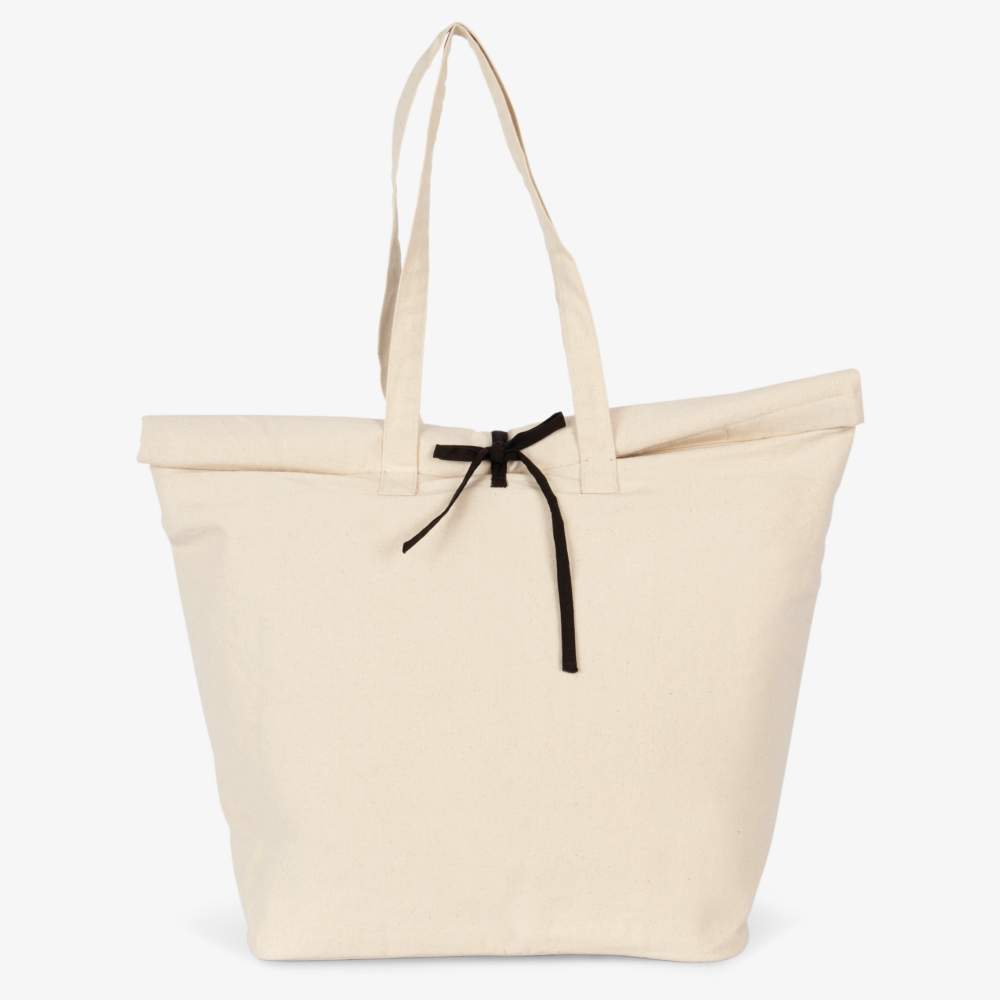 Saco isotérmico feito de algodão reciclado a 60% e algodão virgem a 40%. Seu sistema de fechamento por enrolamento permite a manutenção ótima da temperatura no interior e facilita o seu uso. Ele é equipado com um porta-garrafa semi-rígido de espuma coberto com tecido de algodão para garantir a estabilidade da garrafa e manter o frio. Este saco também pode servir como saco de entrega para pratos prontos, podendo acomodar um prato para viagem e uma bebida. Um bolso externo transparente está presente para inserir o recibo de compra. Disponível em dois tamanhos, M e L, para adaptar o saco às necessidades individuais ou familiares, ou para o transporte das compras semanais.
