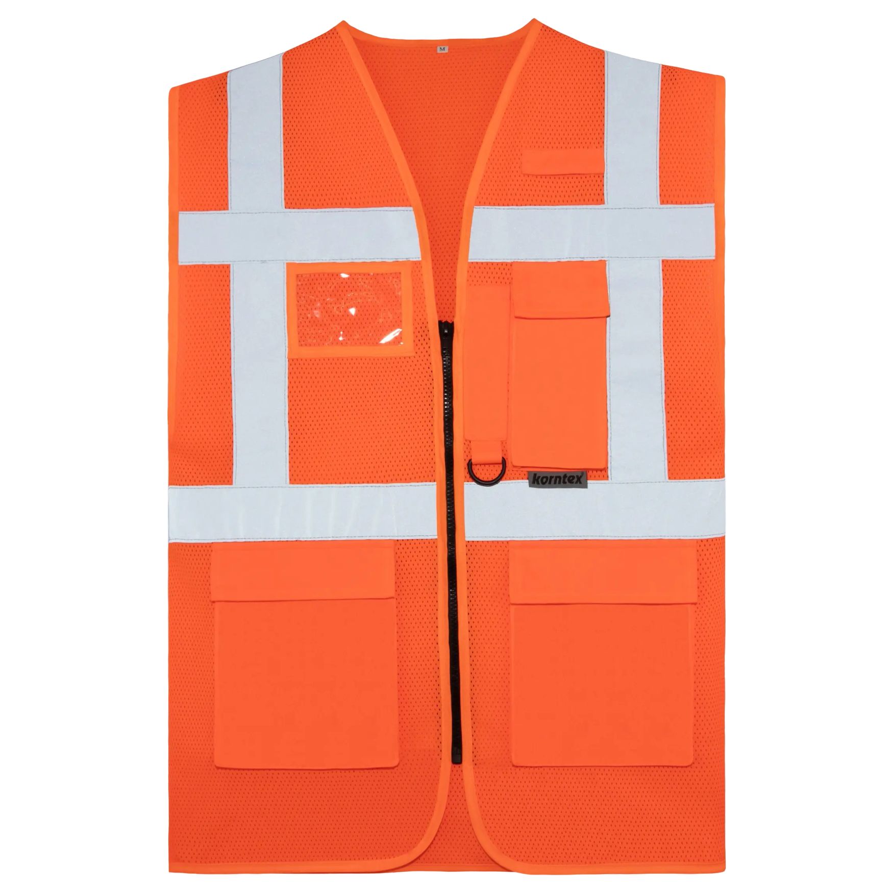 O colete de segurança Larisa é um modelo multifuncional em tecido mesh, concebido com fecho de correr integral na parte da frente, duas faixas refletoras de 5 cm à volta do corpo e nos ombros, bem como vários bolsos para uma utilização prática no dia a dia.