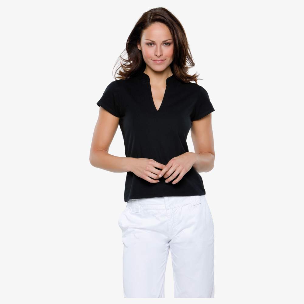 KK770 - Camiseta polo de manga curta com decote em V de algodão elastano kk770 - black