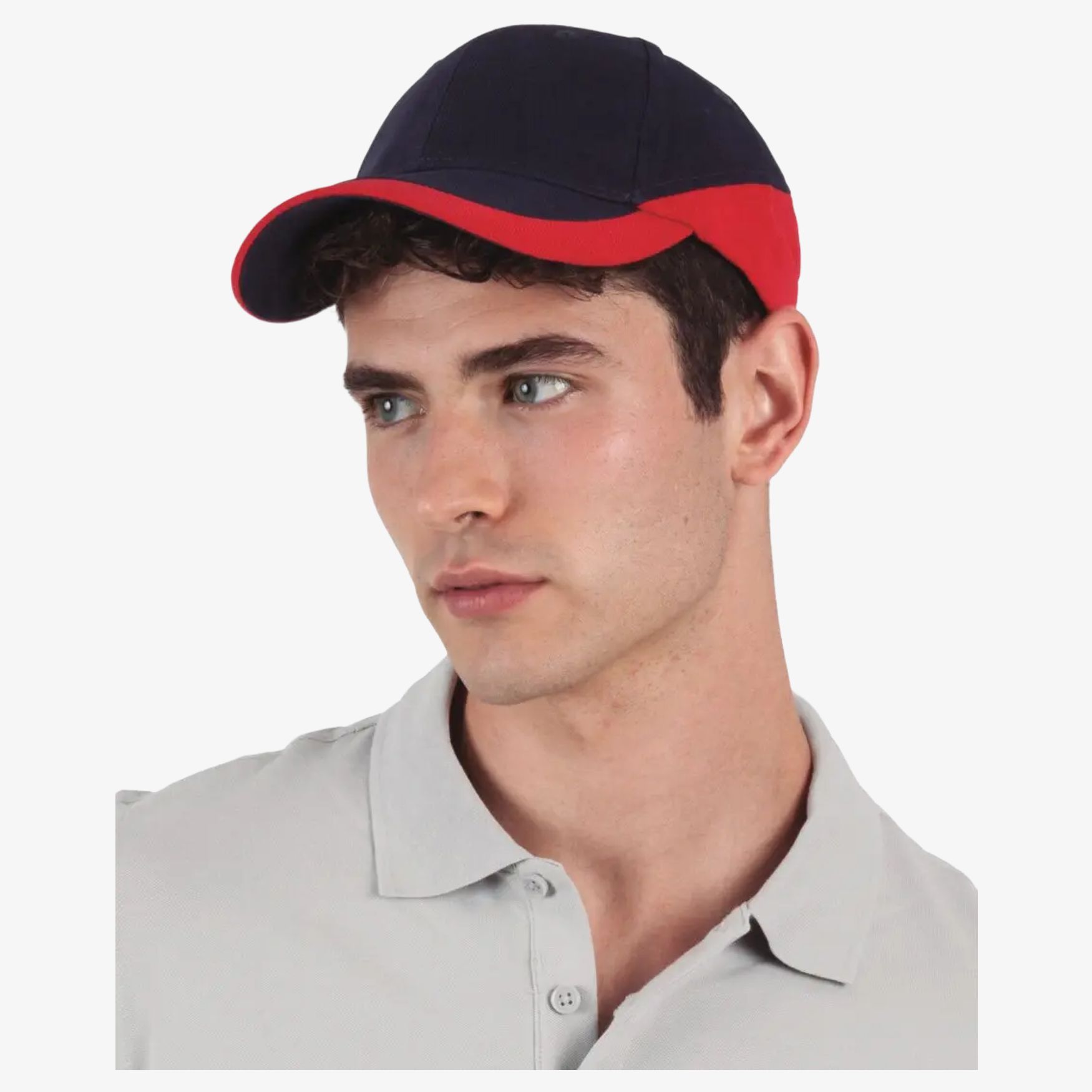 Boné bicolor de 6 painéis com 6 buracos de ventilação. Algodão sarja lixado grosso de alta qualidade para maior suavidade e maciez. Tecelagem sólida e resistente. Fechamento traseiro ajustável por alça metálica e passa-fio colorido prata fosco. Etiqueta removível Tear Away. Composição: 100% algodão sarja lixado grosso.