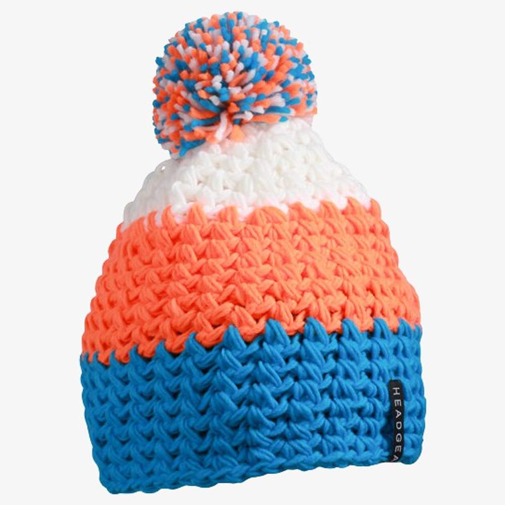 mb7940 - Boné de tricô crochê com pompom mb7940 - pacific/neon_orange/white