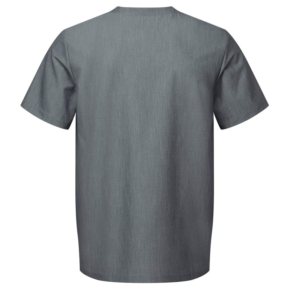 Camisa médica de manga curta para homem, projetada para um conforto ótimo. Seu tecido quadri-extensível garante uma maior liberdade de movimento. Esta camisa é permeável ao ar, fácil de manter e resistente a rugas, ideal para uso diário. Ela apresenta um decote em V, um bolso costurado central integrando um bolso para caneta, pregas nas costas e aberturas laterais para um corte moderno e ajustado. A composição inclui poliéster reciclado, contribuindo para uma abordagem mais responsável.
