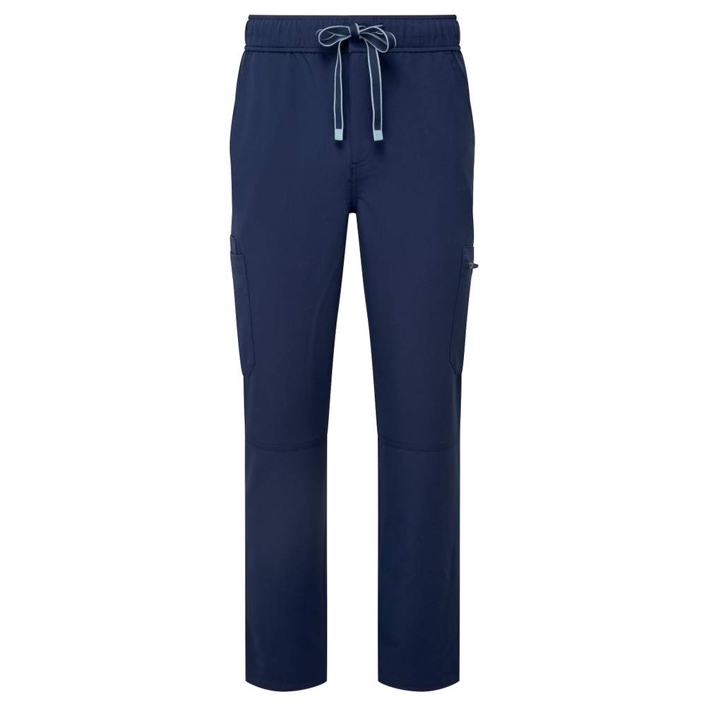 Calça cargo para homem projetada para oferecer conforto e funcionalidade. É confeccionada em tecido quadri-extensível que garante grande liberdade de movimento. Este modelo é fácil de manter e resistente a amassados, tornando-o adequado para uso diário. Possui um cinto com botão único com cordão de ajuste e uma braguilha zipada. Várias bolsos, alguns zipeados, permitem guardar telefone celular e outros pequenos objetos. As aberturas laterais com bainha oferecem maior mobilidade. Esta calça contém poliéster reciclado.