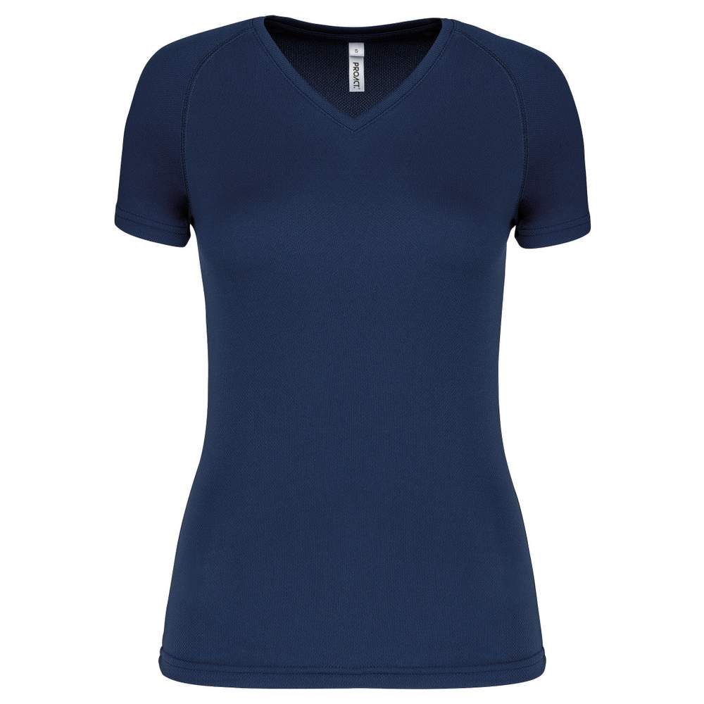 Esta camiseta esportiva manga curta col v é concebida para mulheres ativas. Fabricada em 100% poliéster, oferece uma secagem rápida e um conforto óptimo durante o exercício. Seu corte raglan e seu decote em V garantem total liberdade de movimento. O acabamento com ponta dupla nas mangas e no vestuário garante uma durabilidade aumentada.