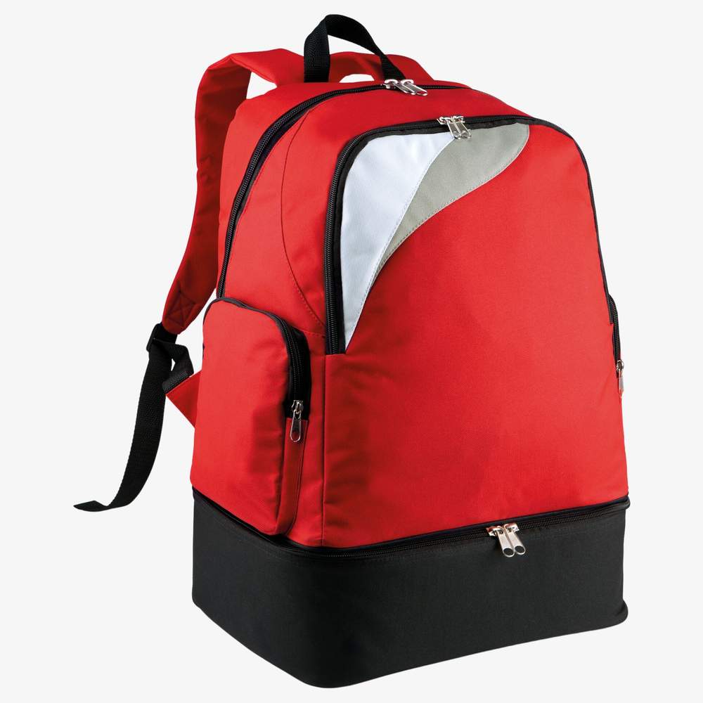 Mochila multi-esportes projetada para o transporte de equipamento esportivo. É fabricada em poliéster 600D, oferecendo boa resistência ao desgaste. Sua estrutura inclui um fundo rígido dedicado ao compartimento de calçados, garantindo maior proteção. Possui uma grande bolsa com zíper na frente para acesso rápido aos itens pessoais, bem como duas bolsas laterais com zíper para uma organização ótima. Esta mochila é adequada para vários esportes coletivos e atividades ao ar livre.