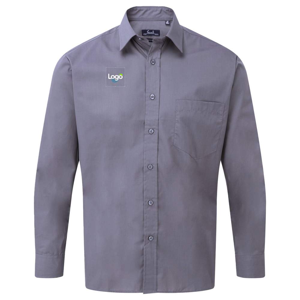 Esta camisa popeline de mangas compridas para homem oferece conforto ótimo e um visual cuidado. Sua composição de algodão poliéster garante uma manutenção fácil e boa resistência ao amassado. Possui um bolso no peito do lado esquerdo e mangas compridas com punhos abotoados. Está disponível em uma ampla gama de cores e pode ser personalizada com bordado do seu logotipo ou visual.