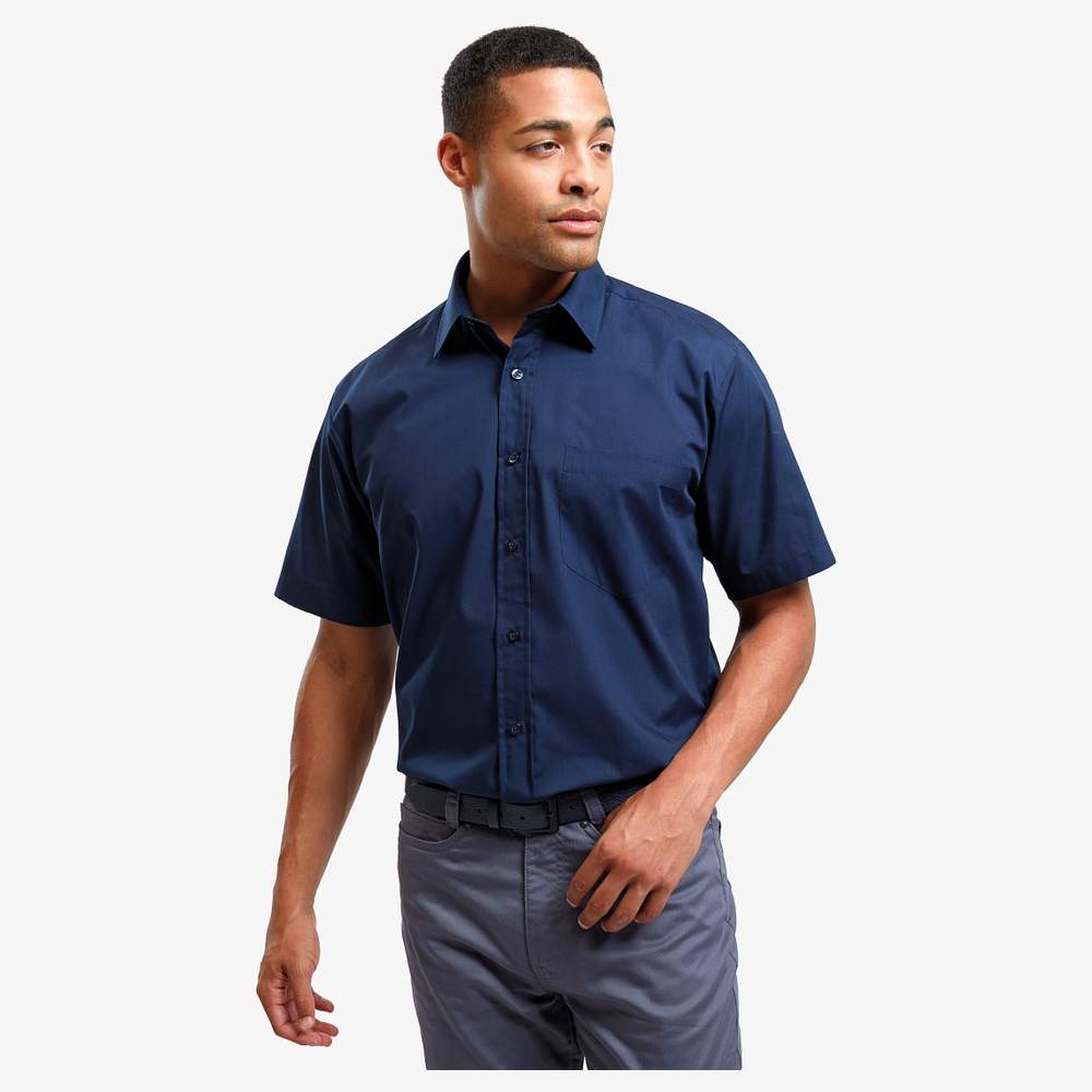 Camisa de mangas curtas confeccionada em popelina. Ela apresenta um colar reforçado para uma melhor sustentação e um bolso no peito localizado do lado esquerdo. A composição em algodão poliéster oferece um cuidado facilitado e um passar a ferro fácil. Esta camisa é projetada para um conforto diário e uma aparência cuidada. Ela é adequada para diversas ocasiões, associando funcionalidade e estilo sóbrio.