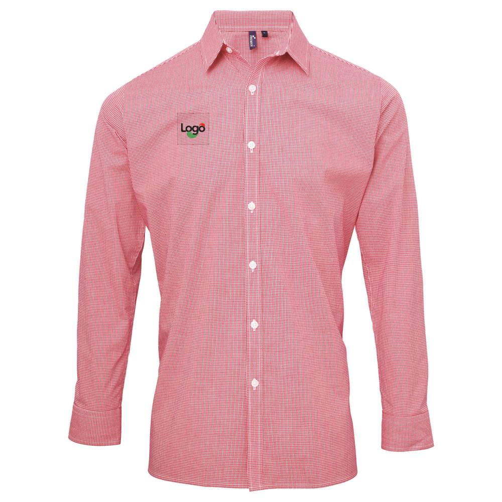 Esta camisa de manga comprida para homem apresenta um padrão vichy de micro quadradinhos. É concebida com um corte ajustado e um colarinho macio para um conforto ótimo. As mangas são dotadas de botões duplos. A composição é de 100% algodão. Esta camisa oferece a possibilidade de personalização em bordado para um visual único e distintivo.