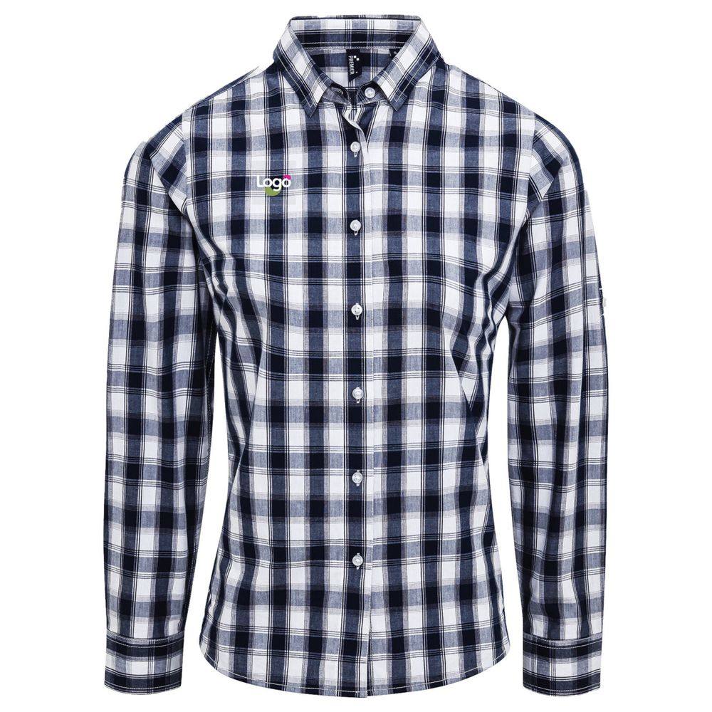 Camisa xadrez para mulher, feita de 100% algodão. Mangas compridas com possibilidade de enrolar e fixar com um botão e uma aba no topo do braço. Colarinho estreito e flexível e corte semi-ajustado. Padrão xadrez. Possibilidade de personalização com bordado para adicionar seu logotipo ou visual. Completando a referência masculina, PR249.