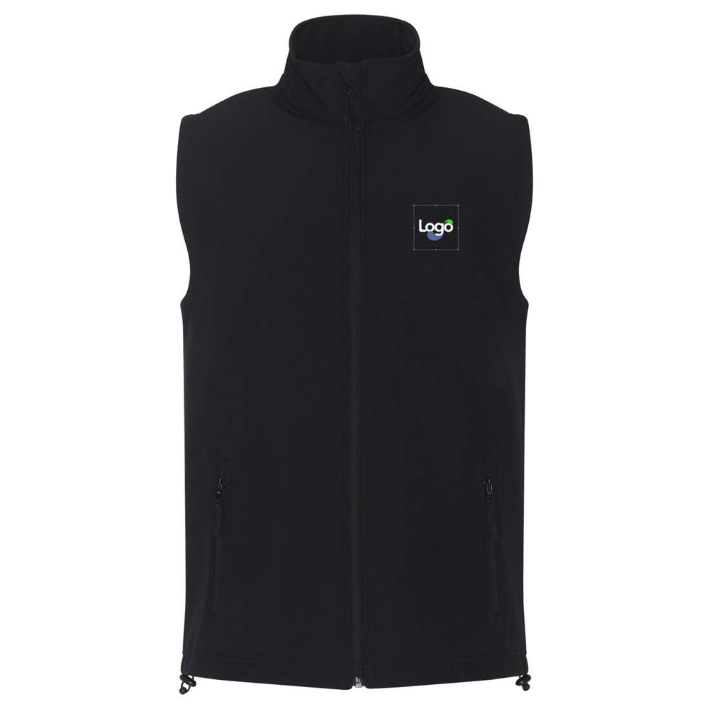 Este gilete de espessura dupla clássico Softshell resistente ao vento irá protegê-lo da chuva e possui um protetor de queixo para uma melhor proteção. Possui dois bolsos laterais zíper na frente, fechamento integral na frente e um protetor de queixo, bem como um cordão elástico na cintura. O corte é largo para maior conforto. Esta peça de vestuário oferece a possibilidade de personalização com bordado para adicionar seu logotipo ou elementos gráficos.