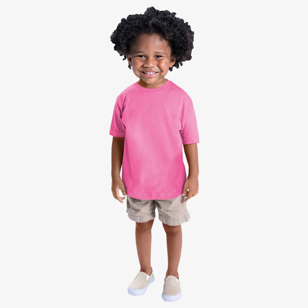 Esta camisa para criança é feita de algodão fino e possui um colarinho rib para conforto ótimo. Possui uma faixa ombro a ombro e uma barra com costura dupla para maior durabilidade. O rótulo tearaway oferece mais conforto. A peça é fabricada em algodão ringspun penteado, proporcionando qualidade superior e conforto.