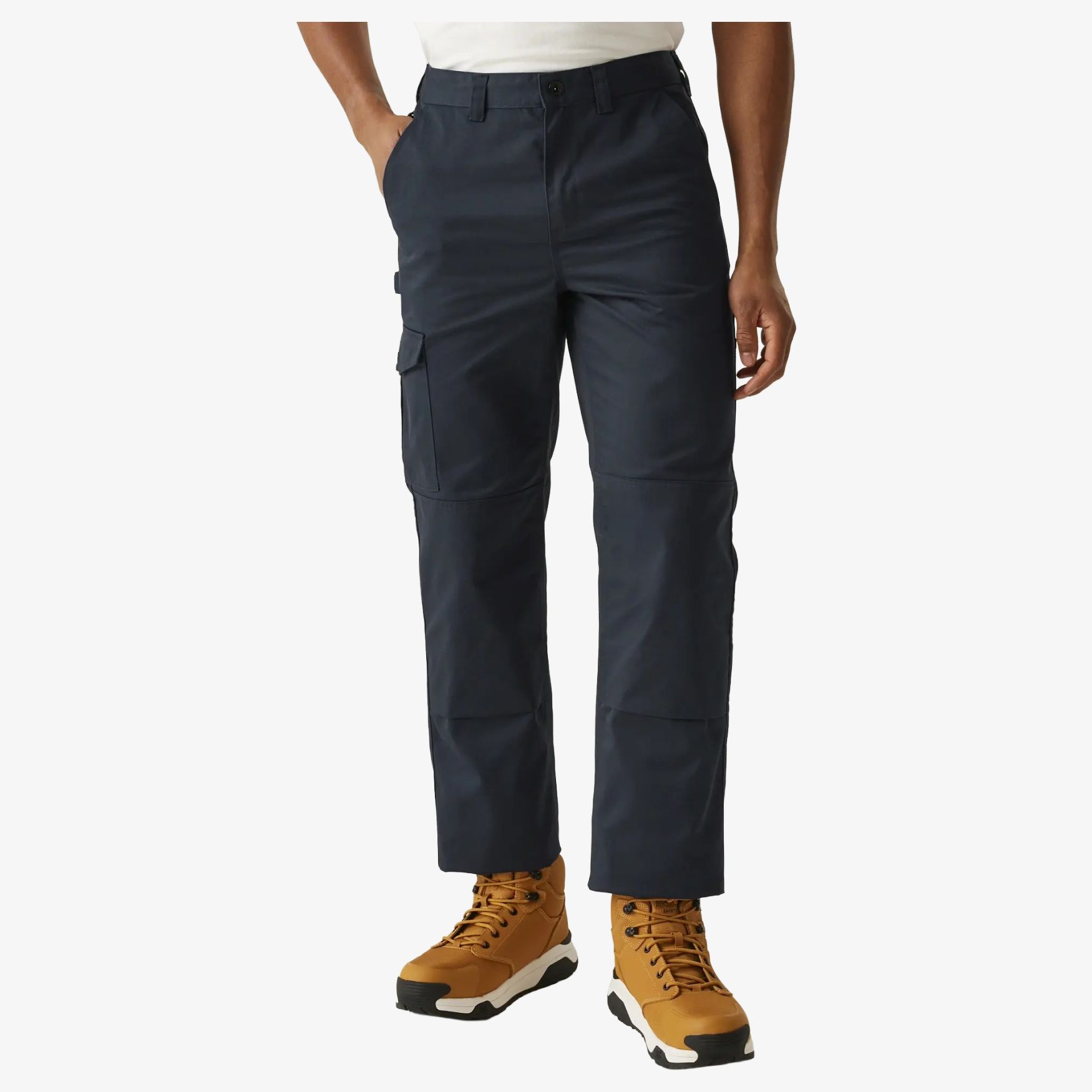As Cargo work trousers são calças de trabalho concebidas para uso diário. A cintura parcialmente elástica, os passantes para cinto e os vários bolsos facilitam a arrumação dos acessórios habituais. As costuras reforçadas na entreperna completam uma conceção adaptada a uma utilização regular.