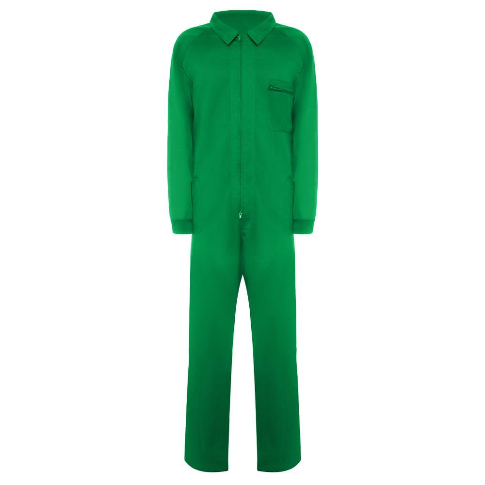 Combinação direita confeccionada em sarja de poliéster e algodão. Ela apresenta um fechamento zíper central, um bolso no peito com zíper à esquerda, dois bolsos laterais e um bolso lateral estreito. Os punhos são elásticos com borracha 1x1 para um ajuste confortável. A etiqueta é destacável.