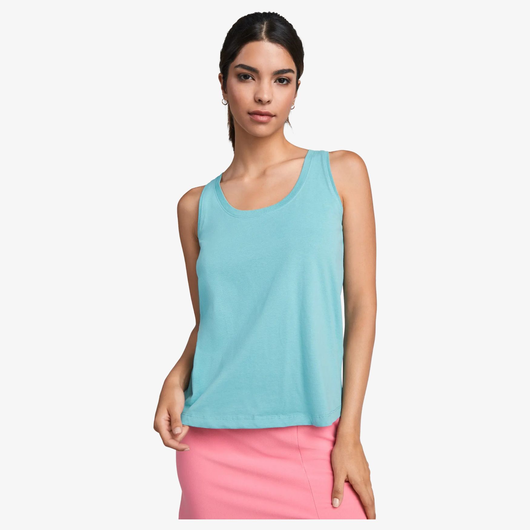 Camiseta solta para mulher, concebida para oferecer conforto e liberdade de movimento. Ela apresenta alças largas, um decote e mangas em ponto costura simples, bem como uma barra redonda para um silhouette lisonjeiro. As costuras laterais garantem um ajuste ótimo. A etiqueta é facilmente removível para um conforto acrescido.